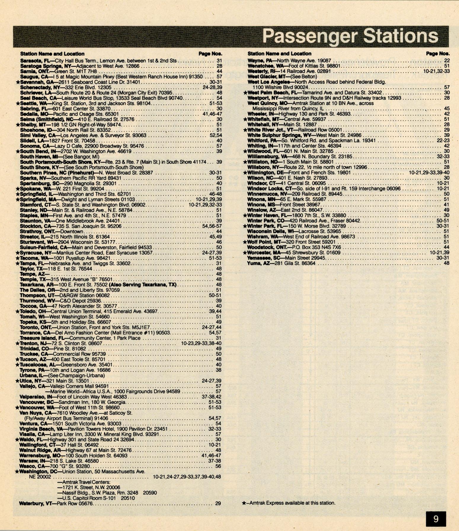 This timetable image is ©1986 National Railroad Passenger Corporation (Amtrak).