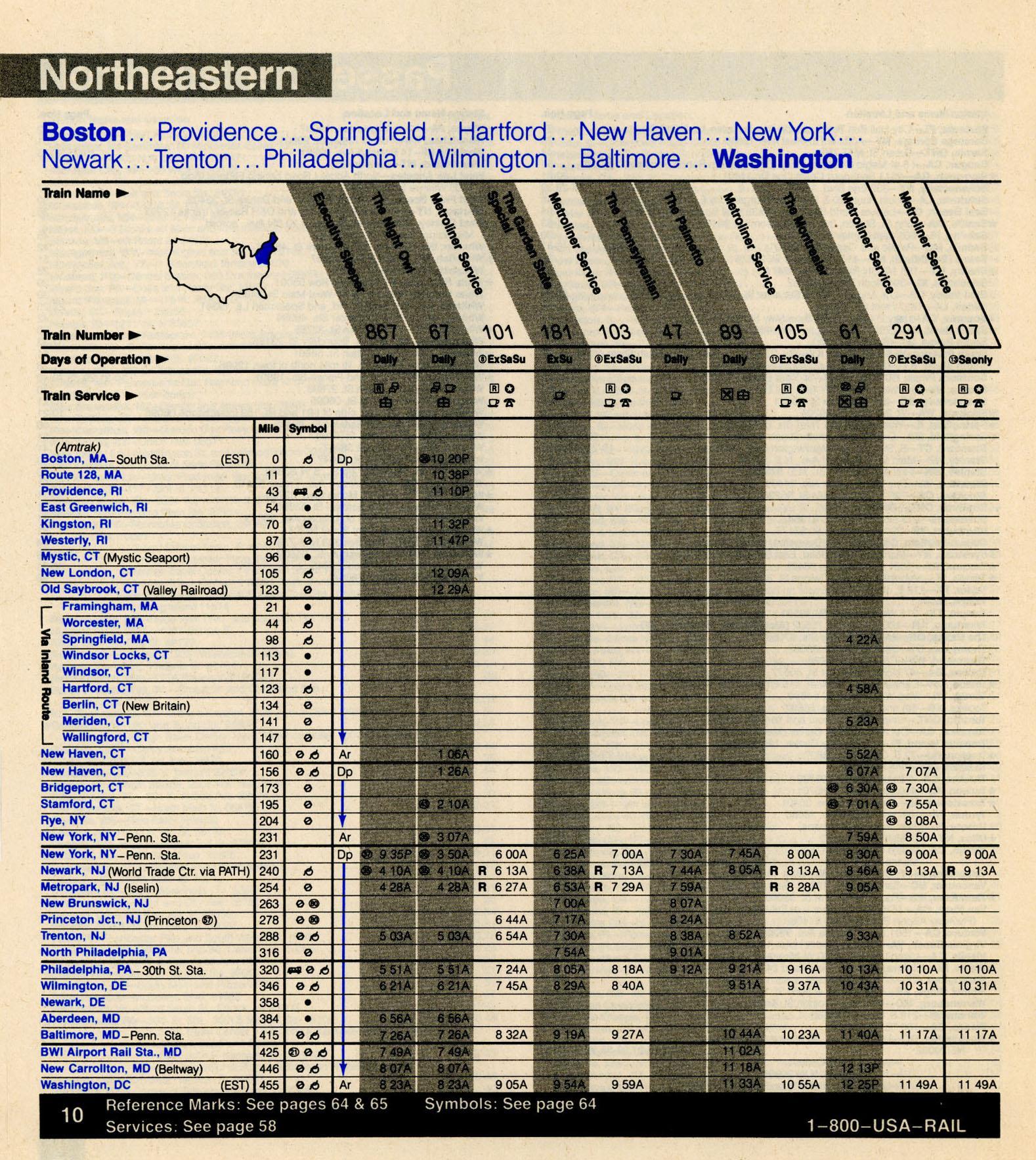 This timetable image is ©1986 National Railroad Passenger Corporation (Amtrak).