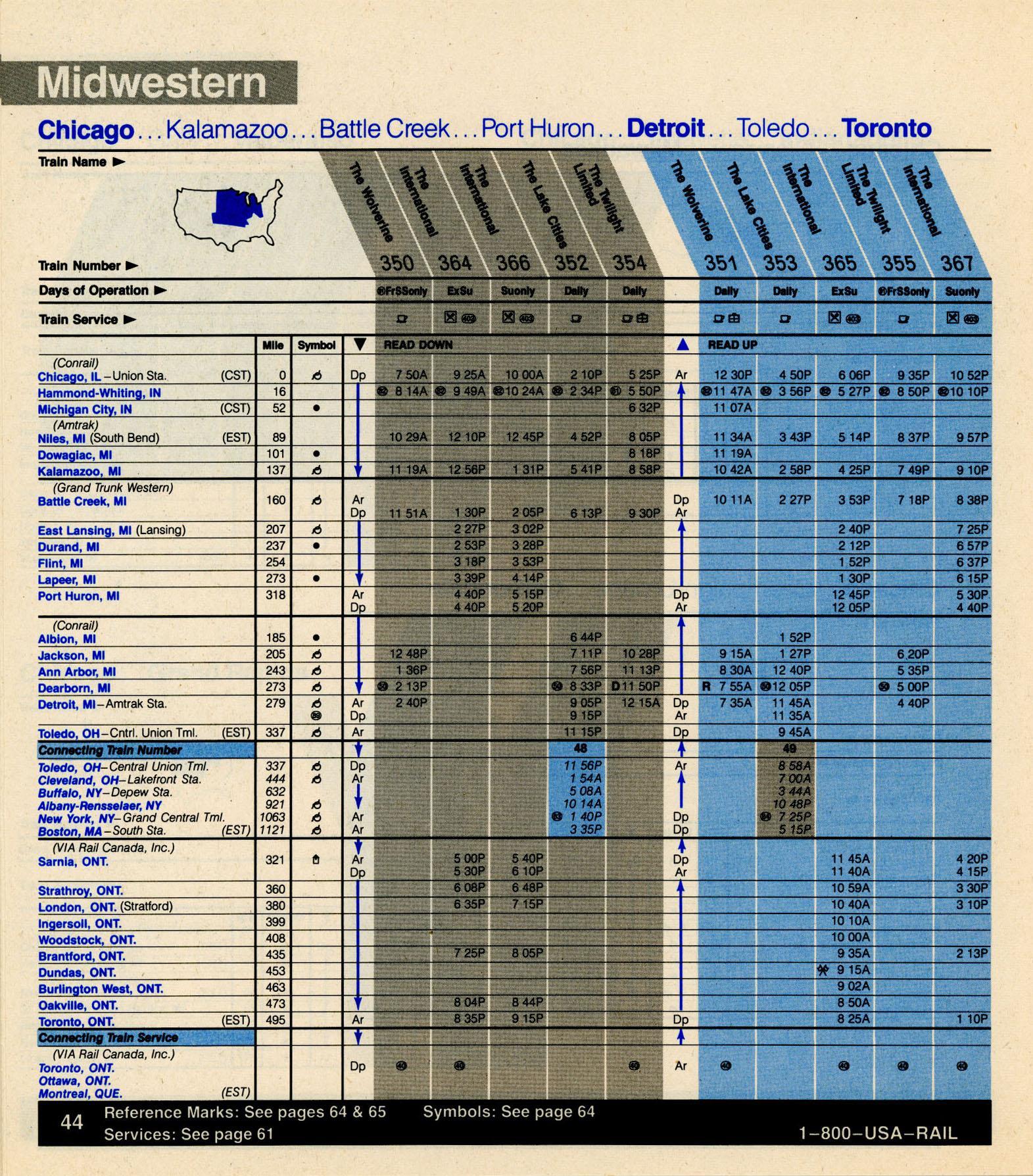 This timetable image is ©1986 National Railroad Passenger Corporation (Amtrak).
