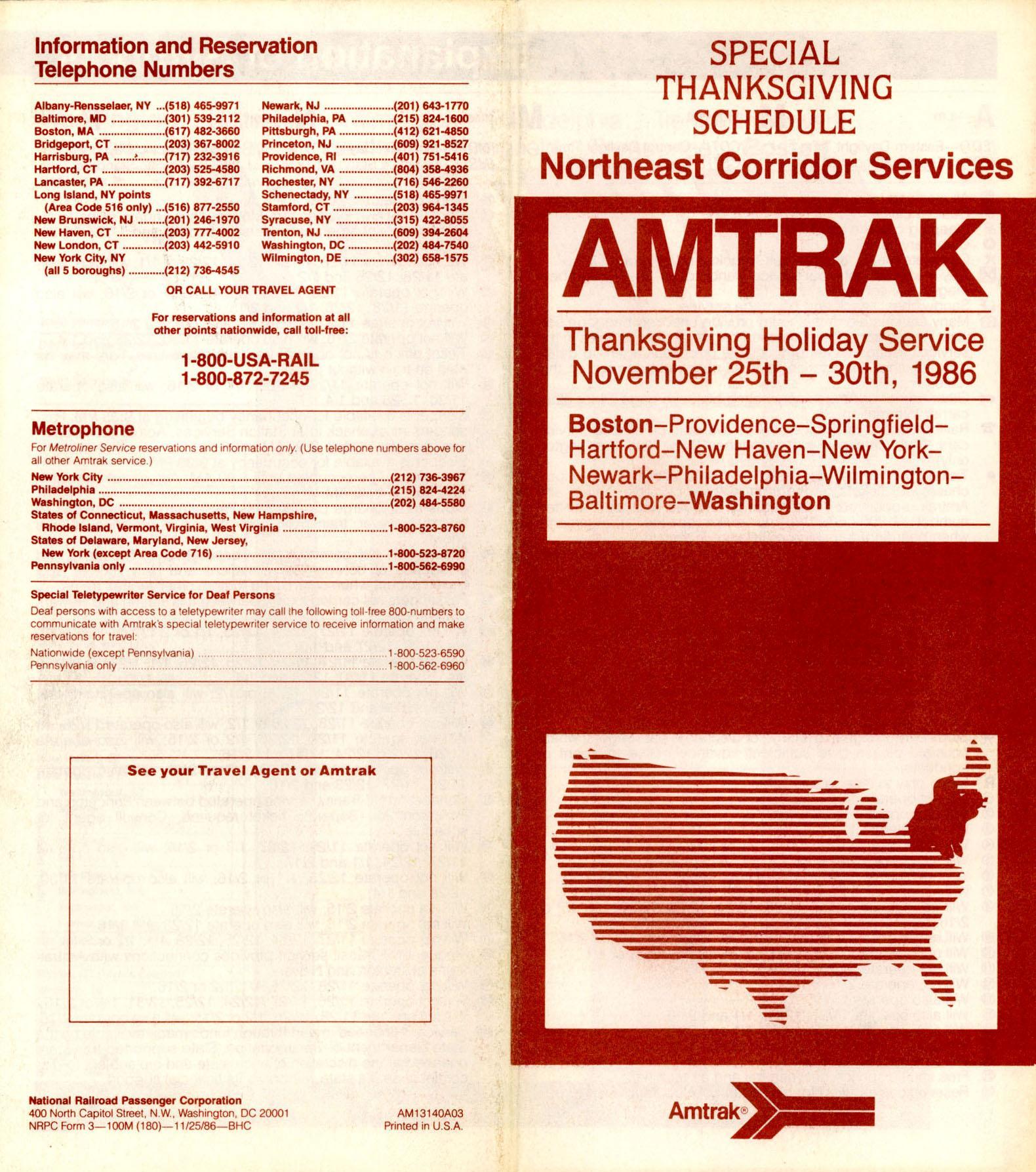 This timetable image is ©1986 National Railroad Passenger Corporation (Amtrak).