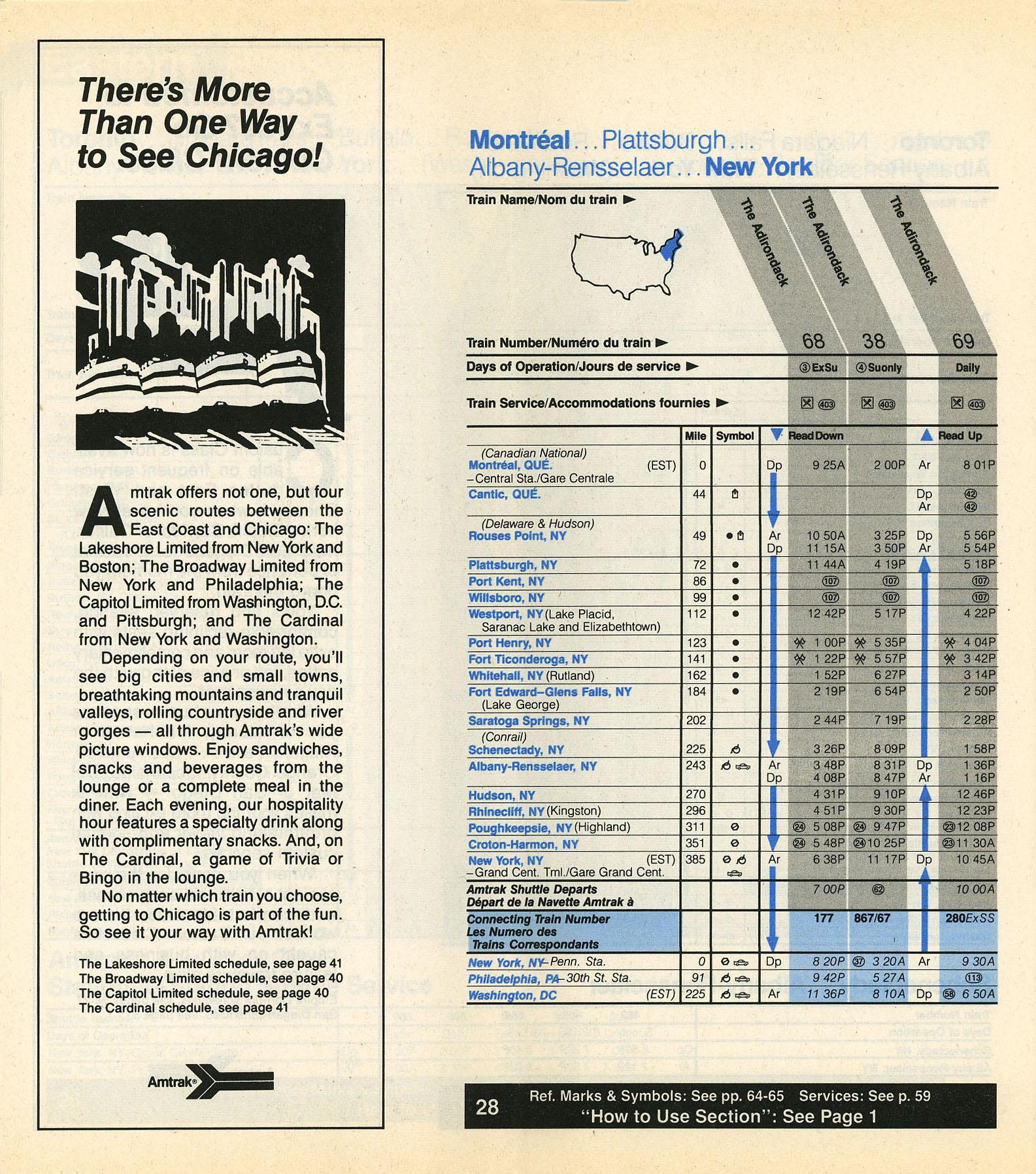 This timetable image is ©1987 National Railroad Passenger Corporation (Amtrak).