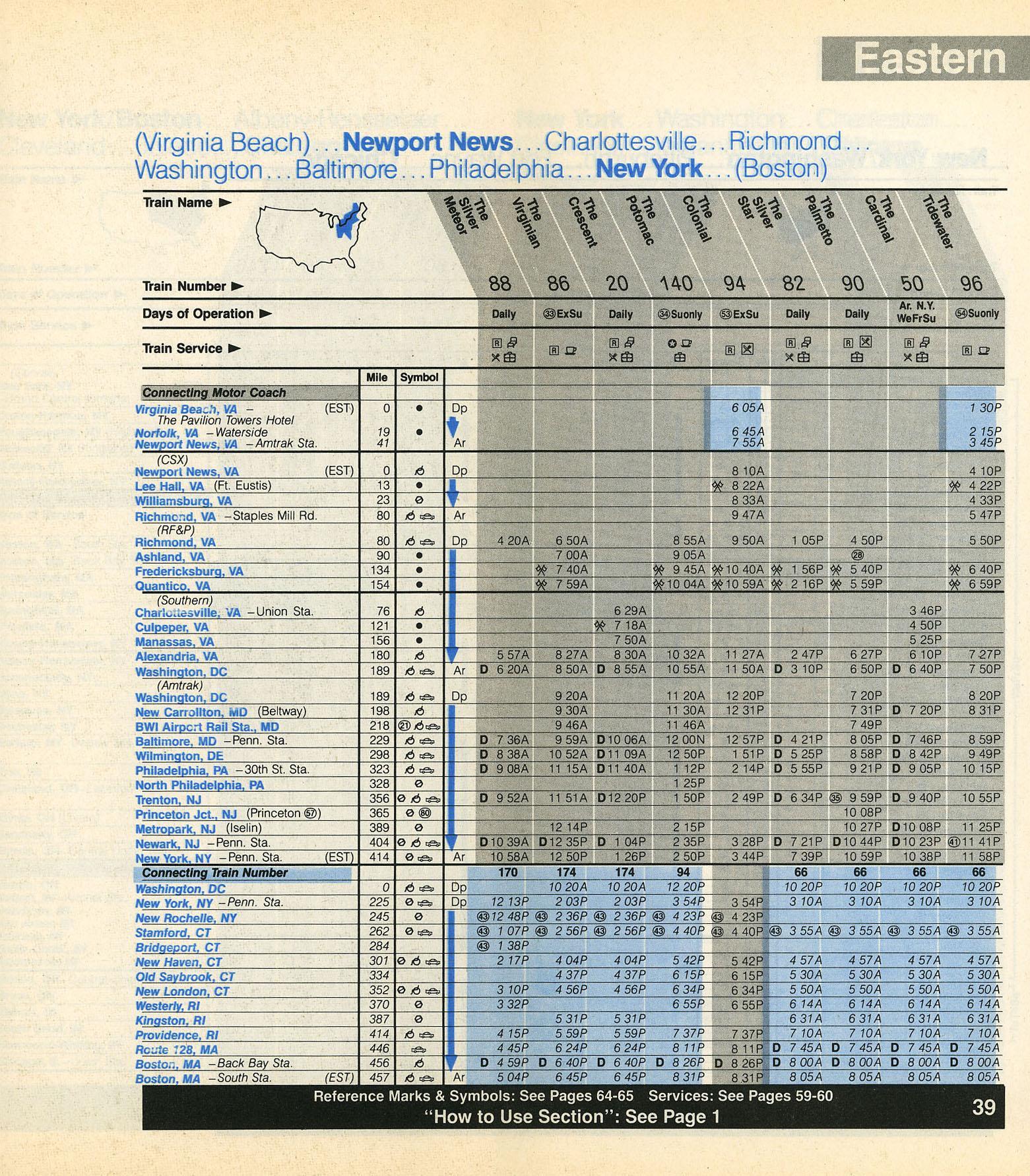 This timetable image is ©1987 National Railroad Passenger Corporation (Amtrak).