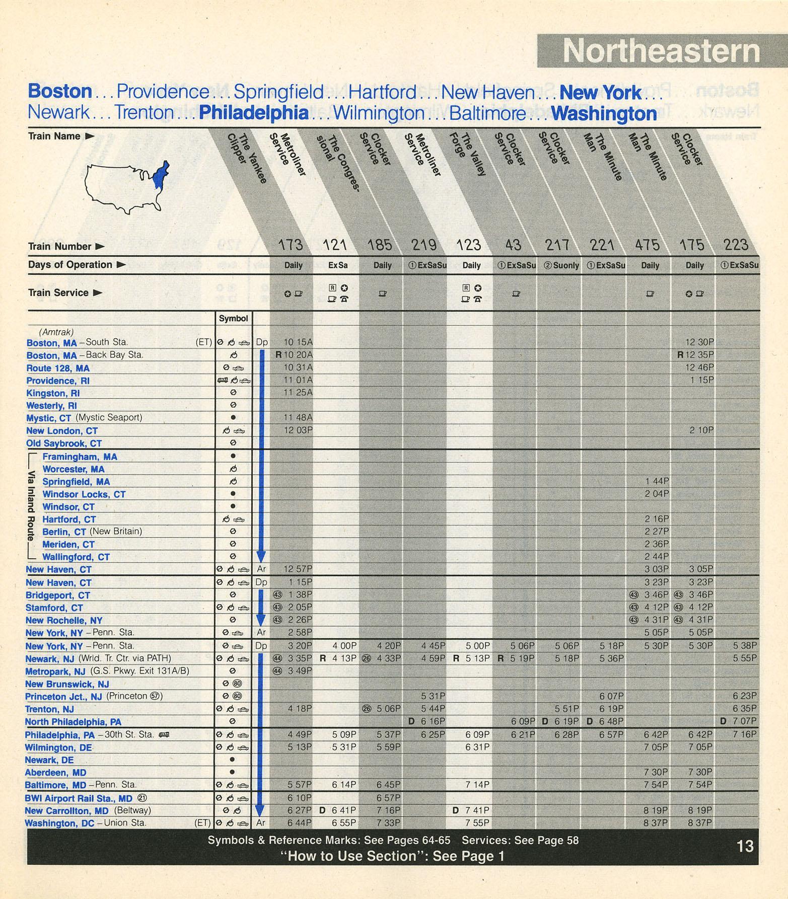 This timetable image is ©1989 National Railroad Passenger Corporation (Amtrak).
