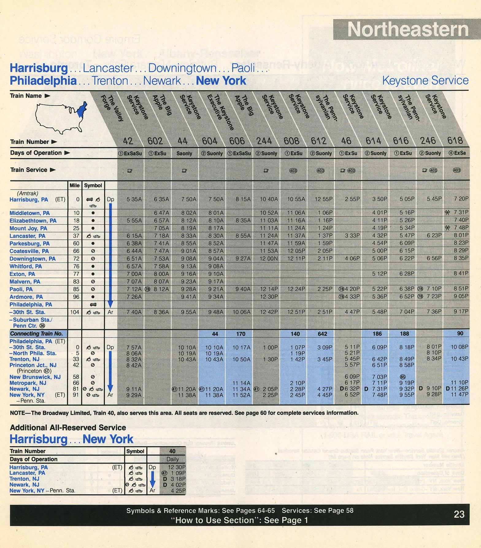 This timetable image is ©1989 National Railroad Passenger Corporation (Amtrak).