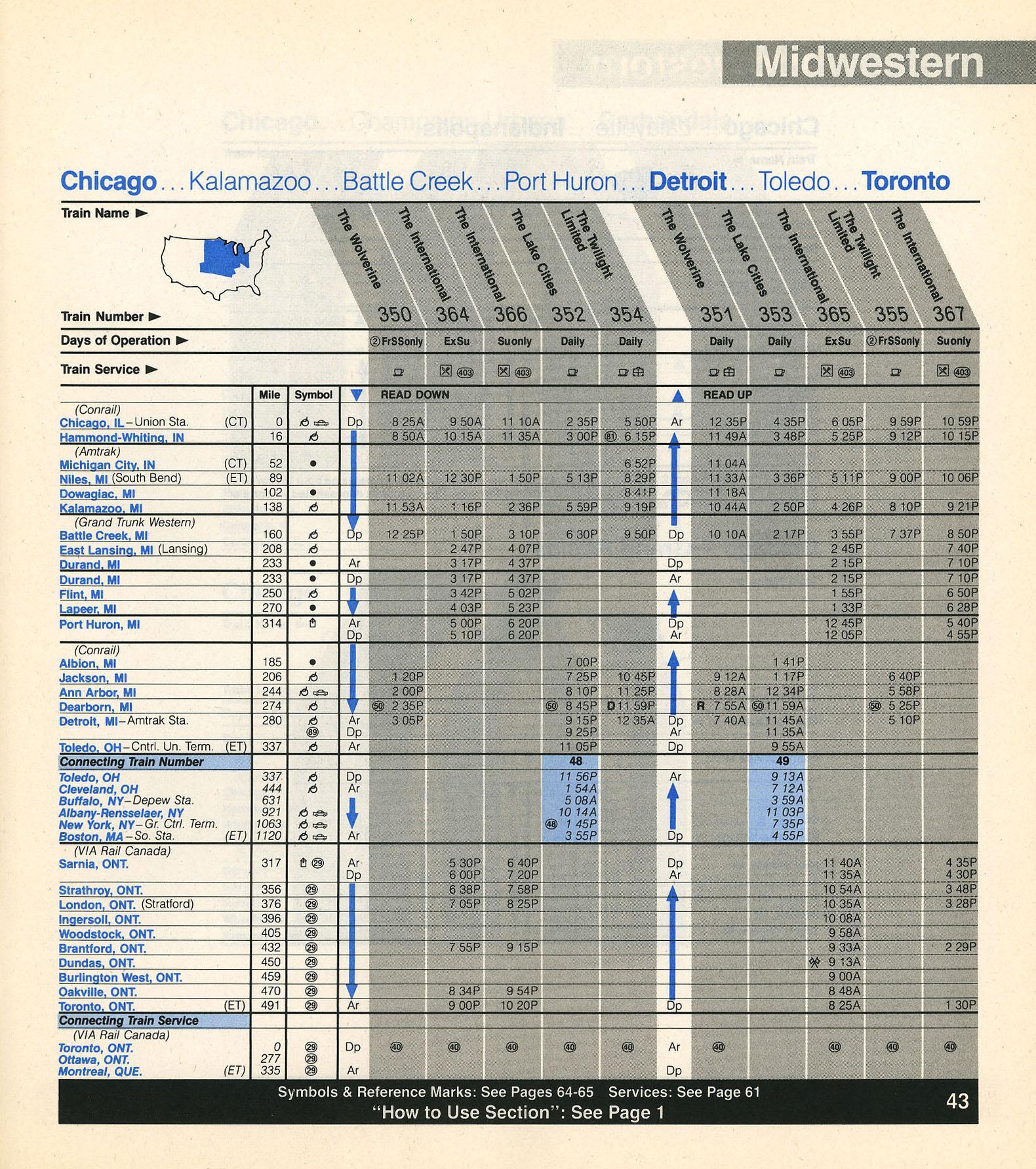 This timetable image is ©1989 National Railroad Passenger Corporation (Amtrak).