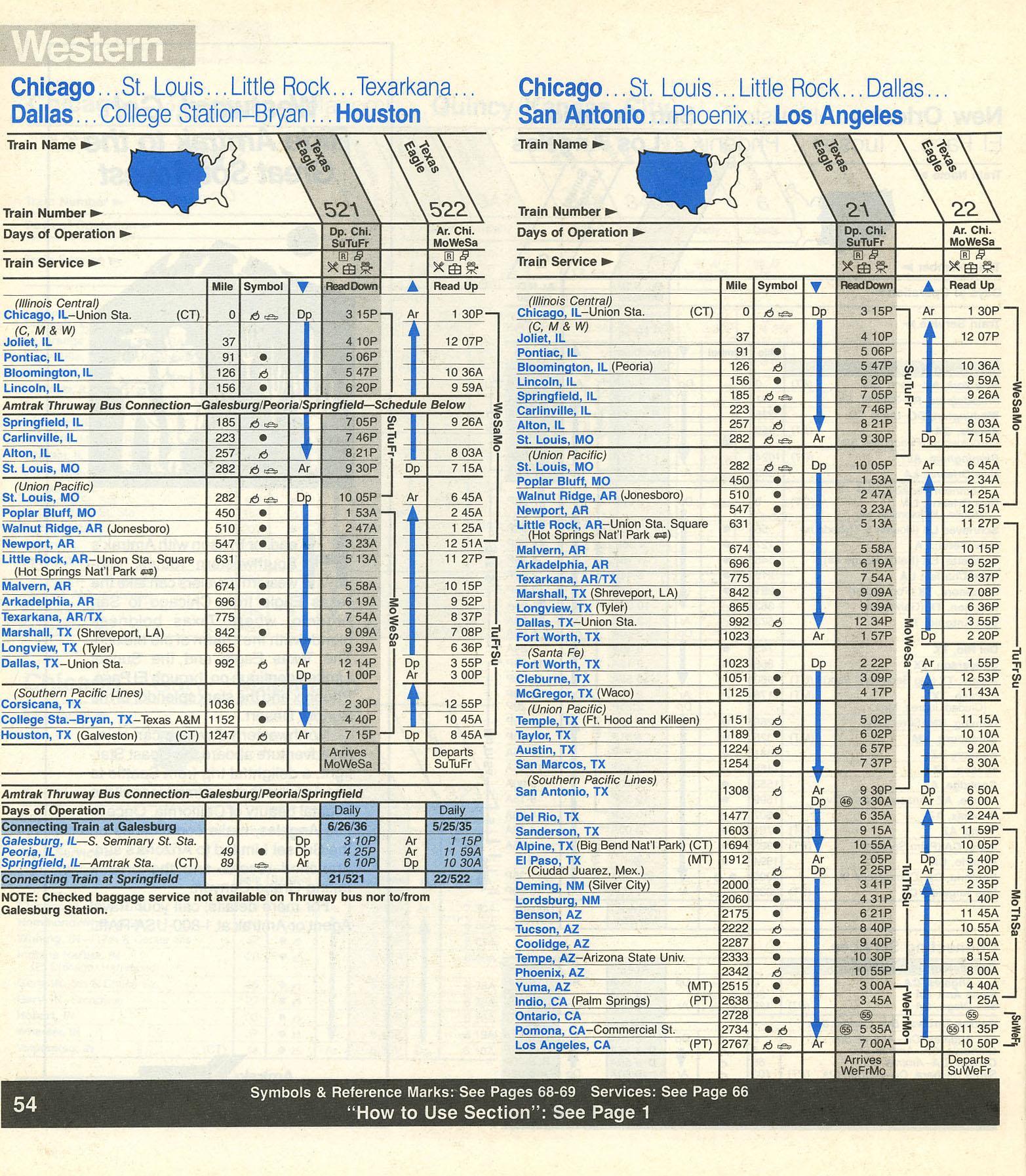 This timetable image is ©1989 National Railroad Passenger Corporation (Amtrak).