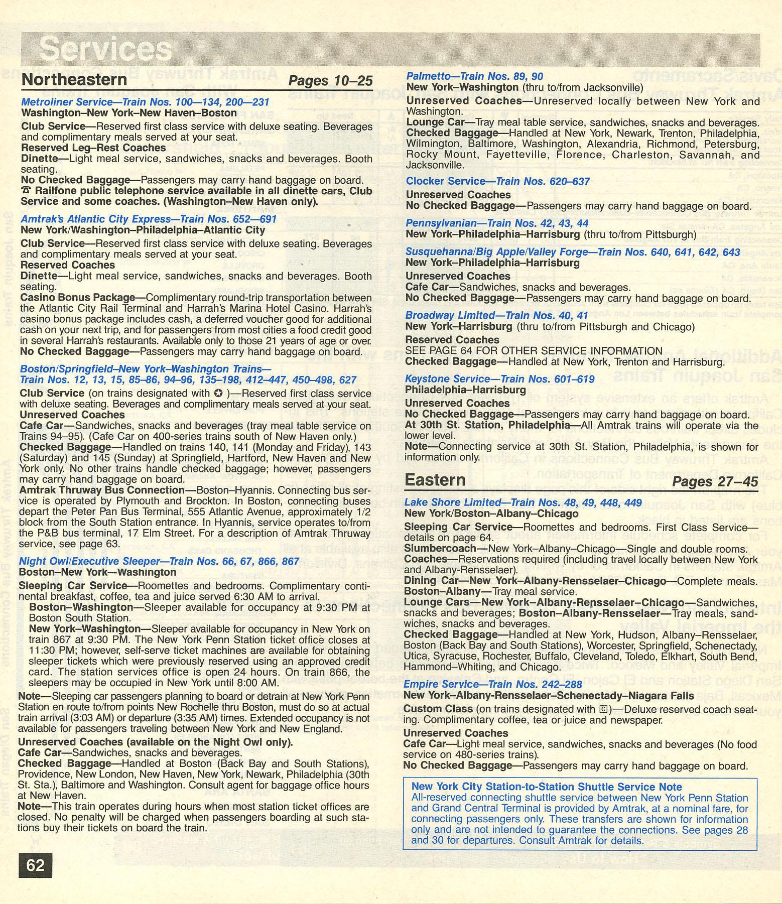 This timetable image is ©1989 National Railroad Passenger Corporation (Amtrak).