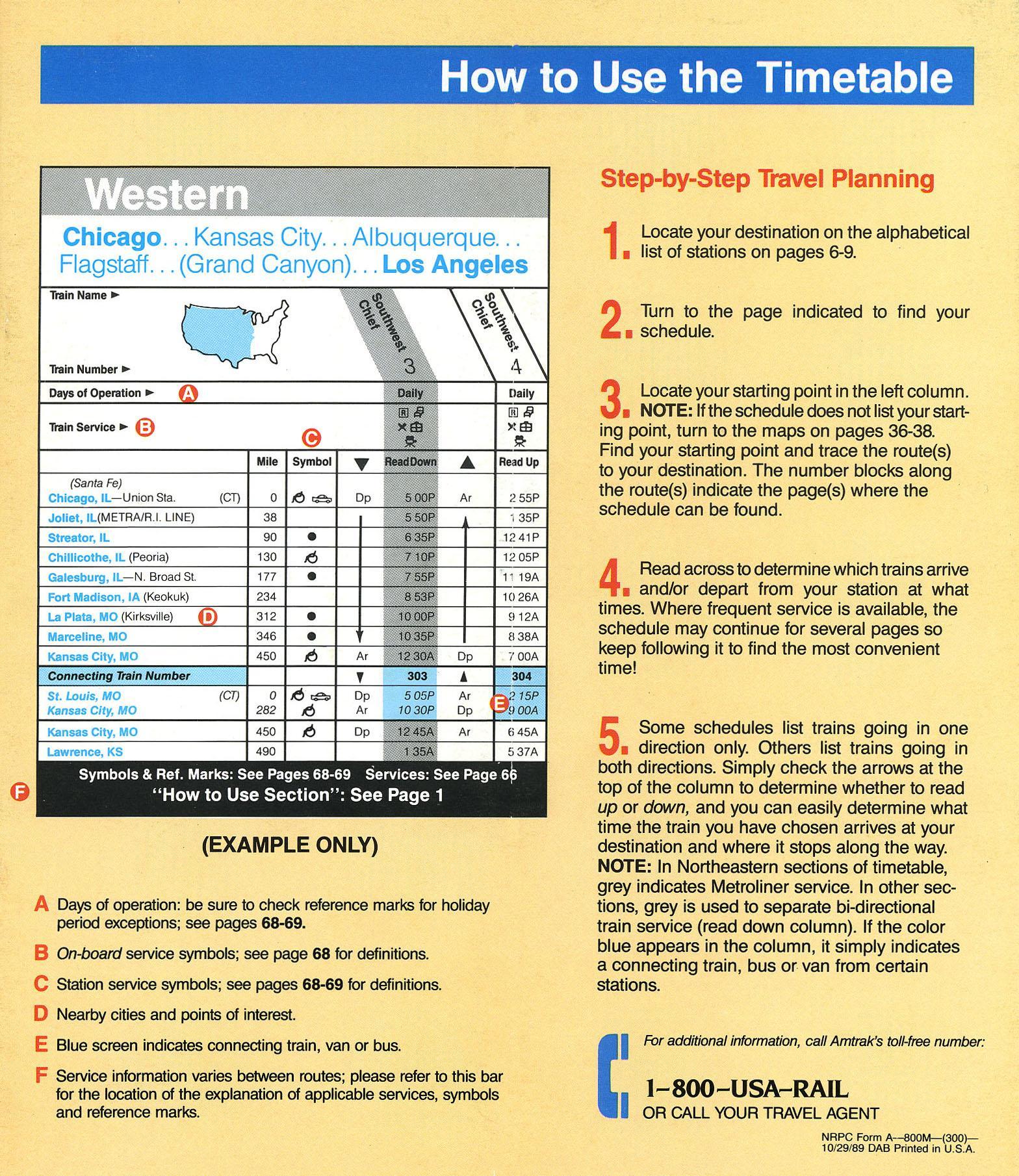 This timetable image is ©1989 National Railroad Passenger Corporation (Amtrak).