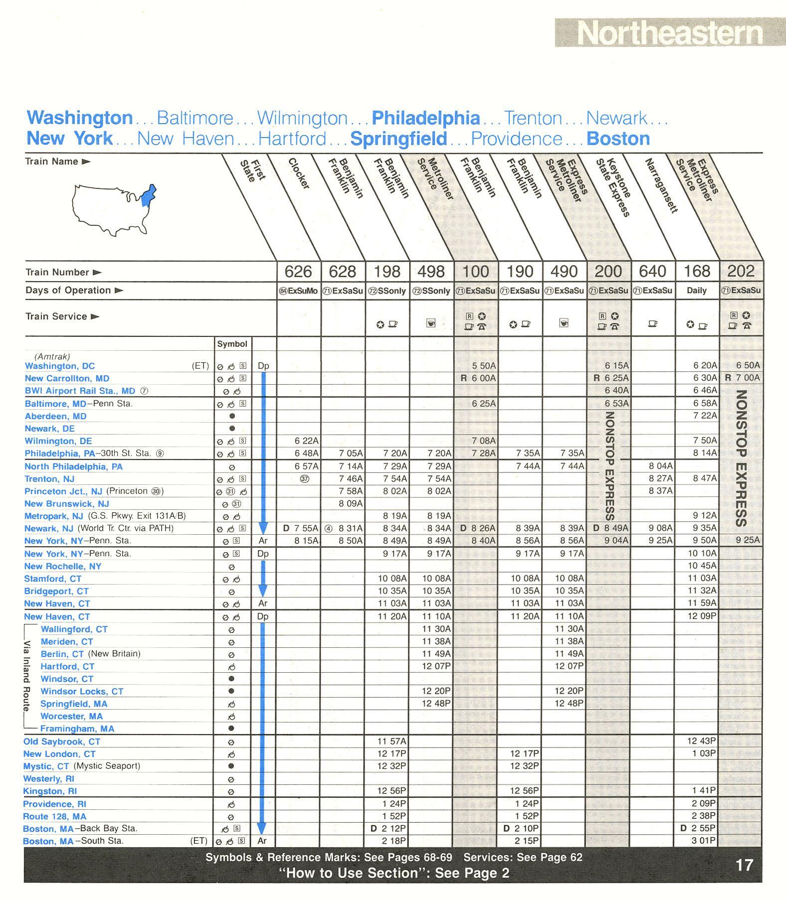 This timetable image is ©1990 National Railroad Passenger Corporation (Amtrak).