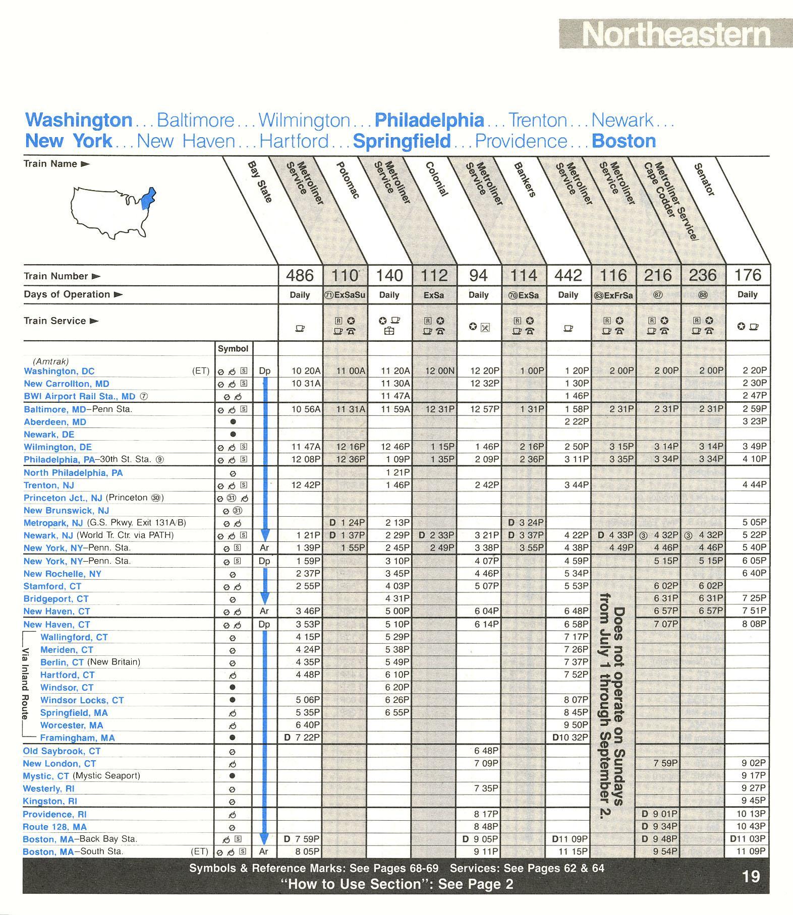 This timetable image is ©1990 National Railroad Passenger Corporation (Amtrak).