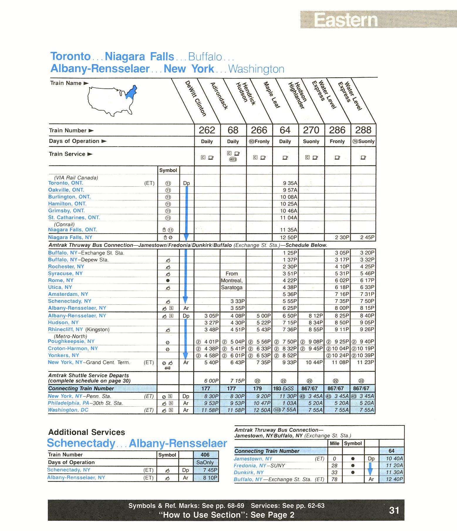This timetable image is ©1990 National Railroad Passenger Corporation (Amtrak).