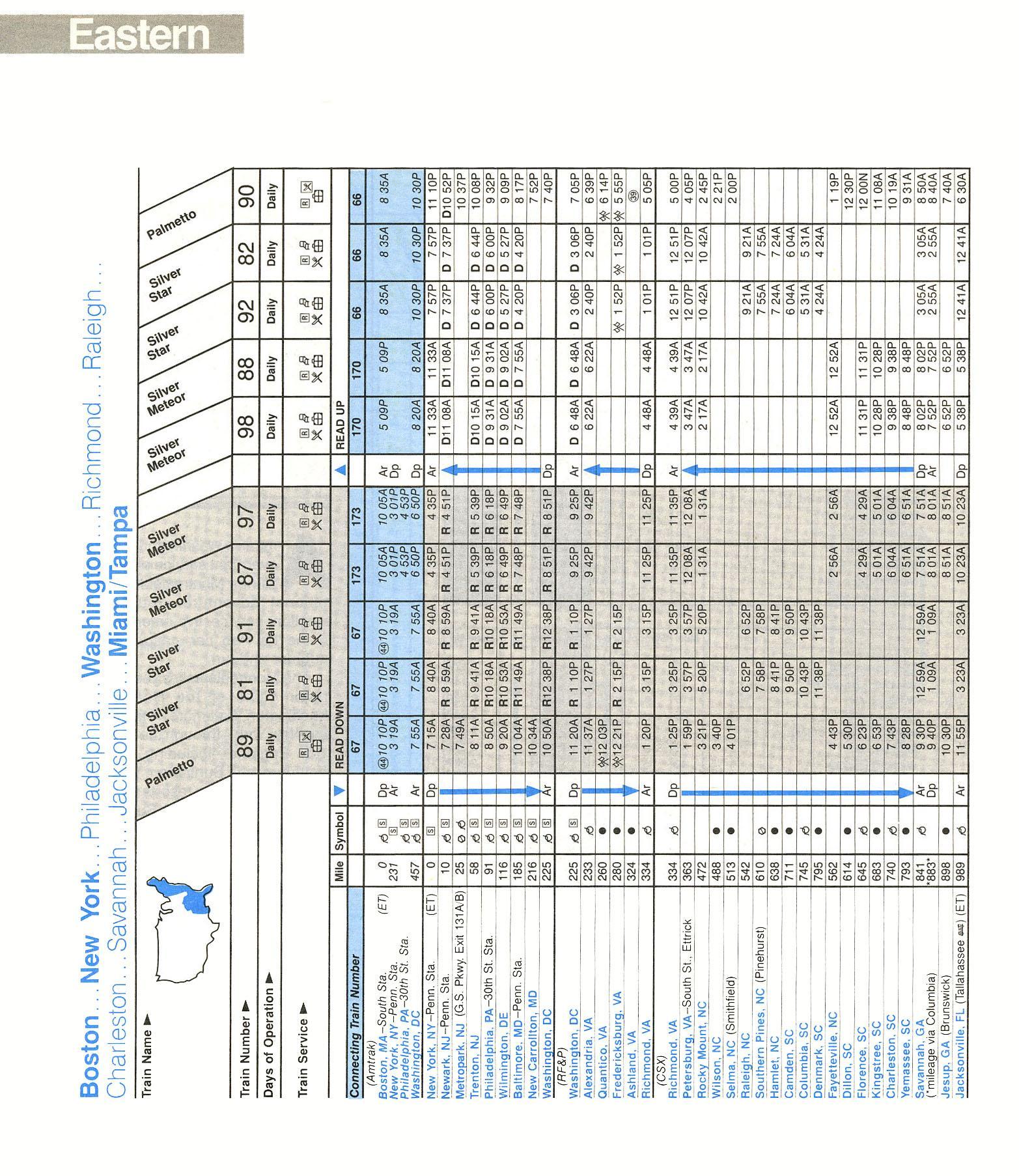 This timetable image is ©1990 National Railroad Passenger Corporation (Amtrak).