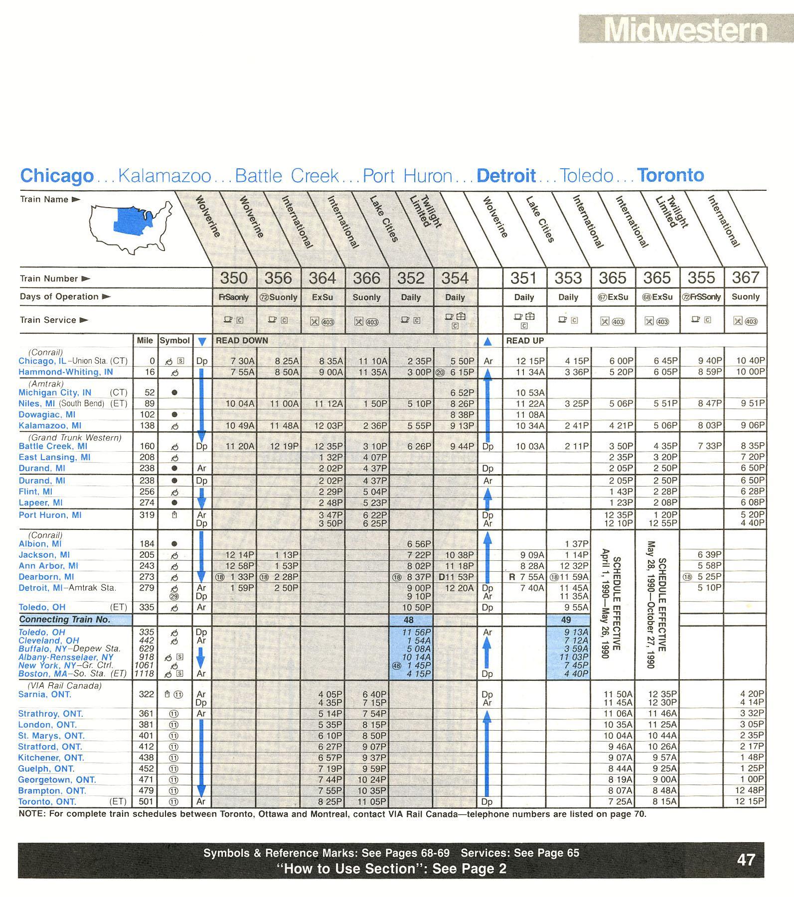 This timetable image is ©1990 National Railroad Passenger Corporation (Amtrak).