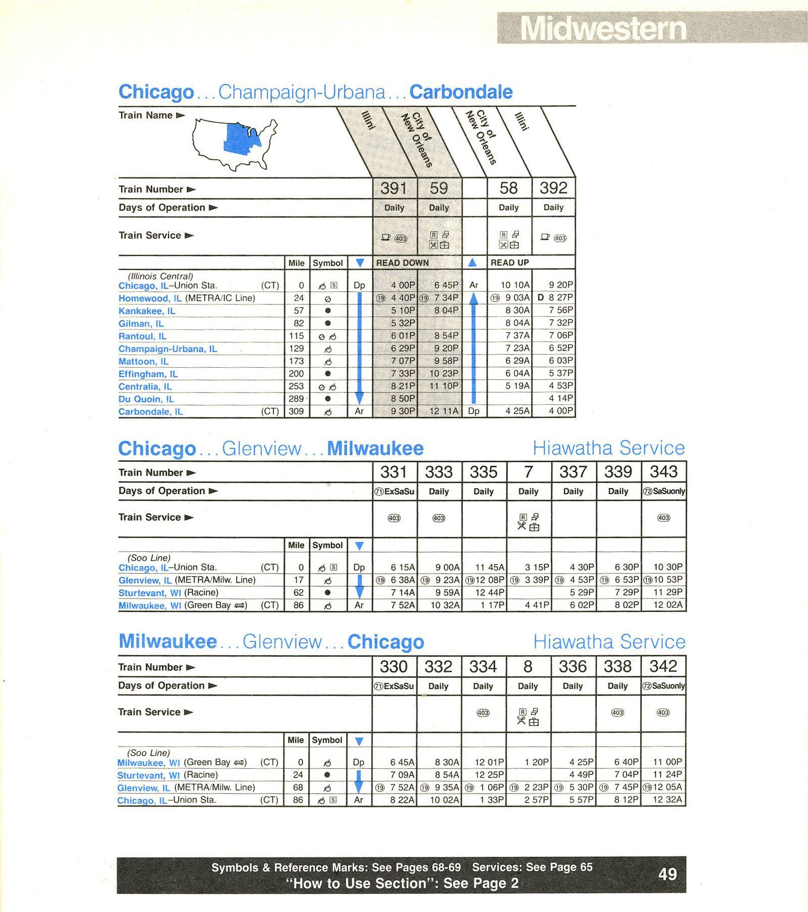 This timetable image is ©1990 National Railroad Passenger Corporation (Amtrak).