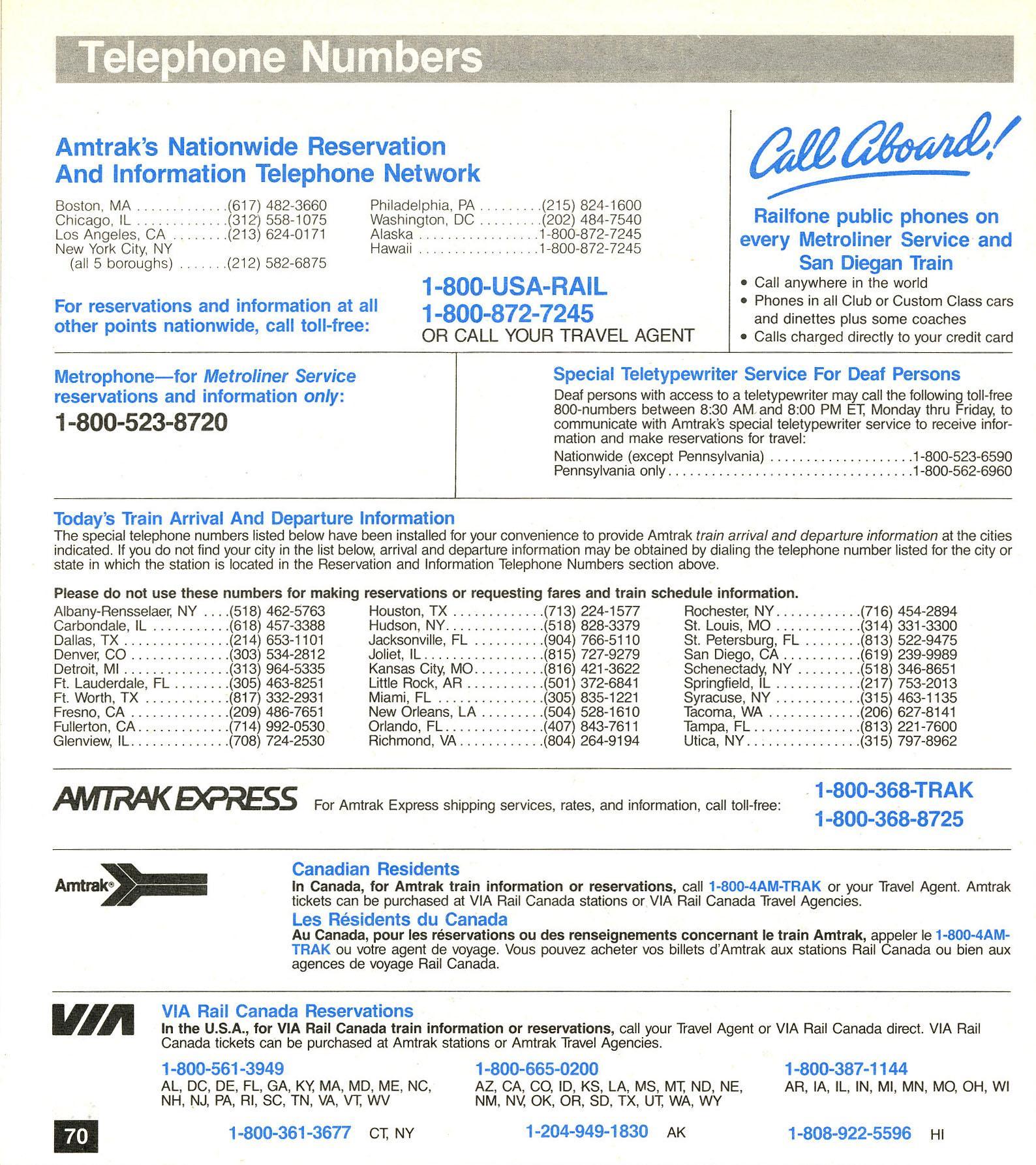 This timetable image is ©1990 National Railroad Passenger Corporation (Amtrak).
