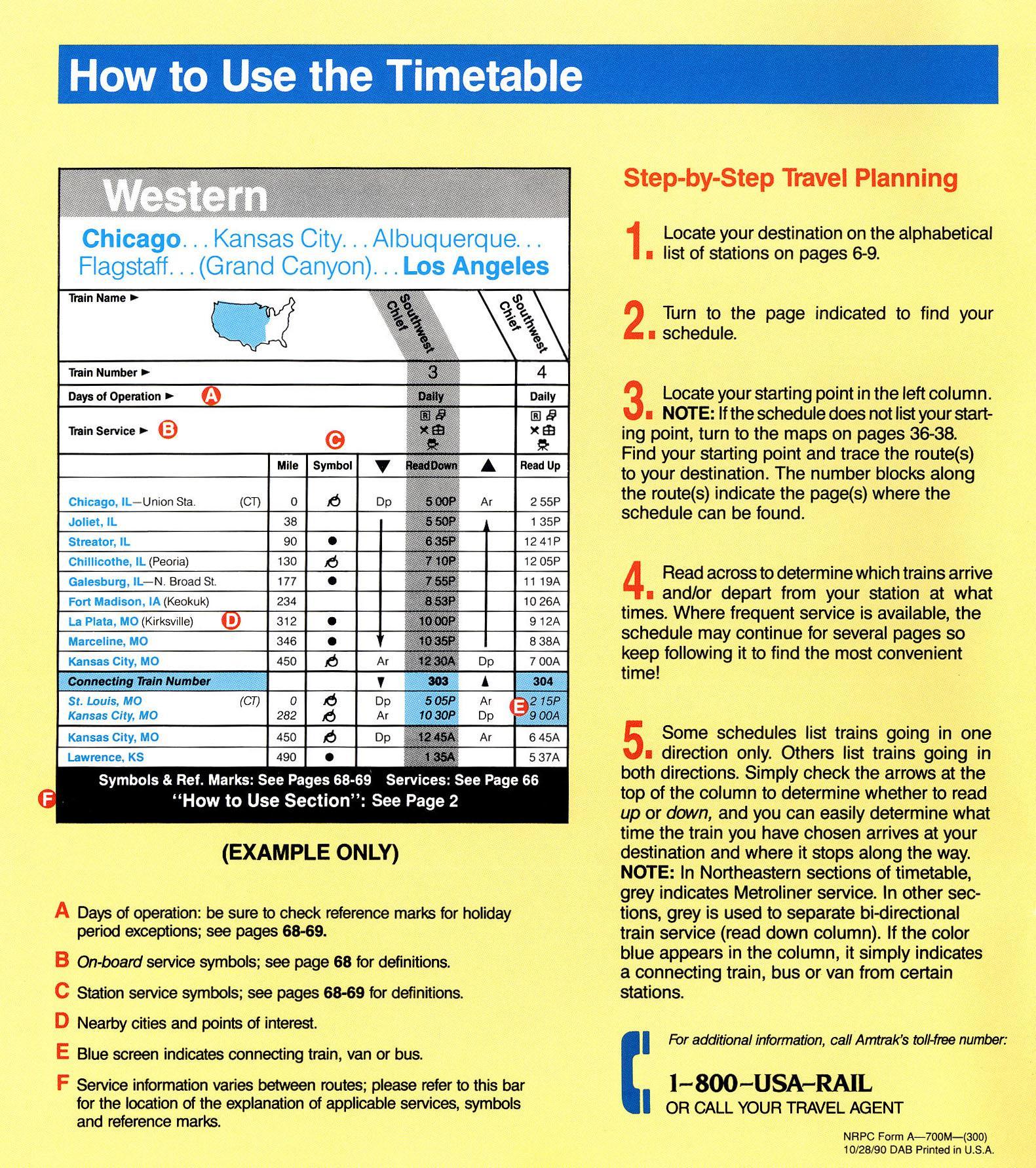 This timetable image is ©1990 National Railroad Passenger Corporation (Amtrak).