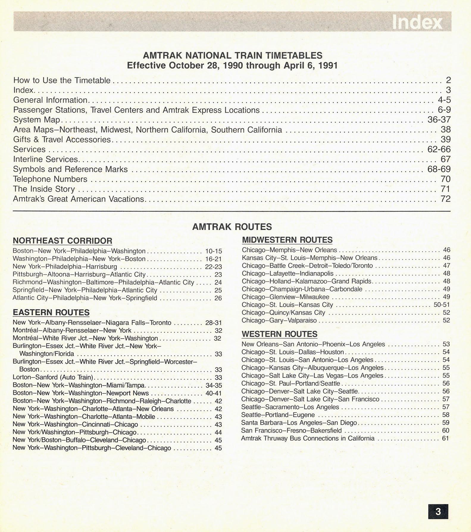 This timetable image is ©1990 National Railroad Passenger Corporation (Amtrak).