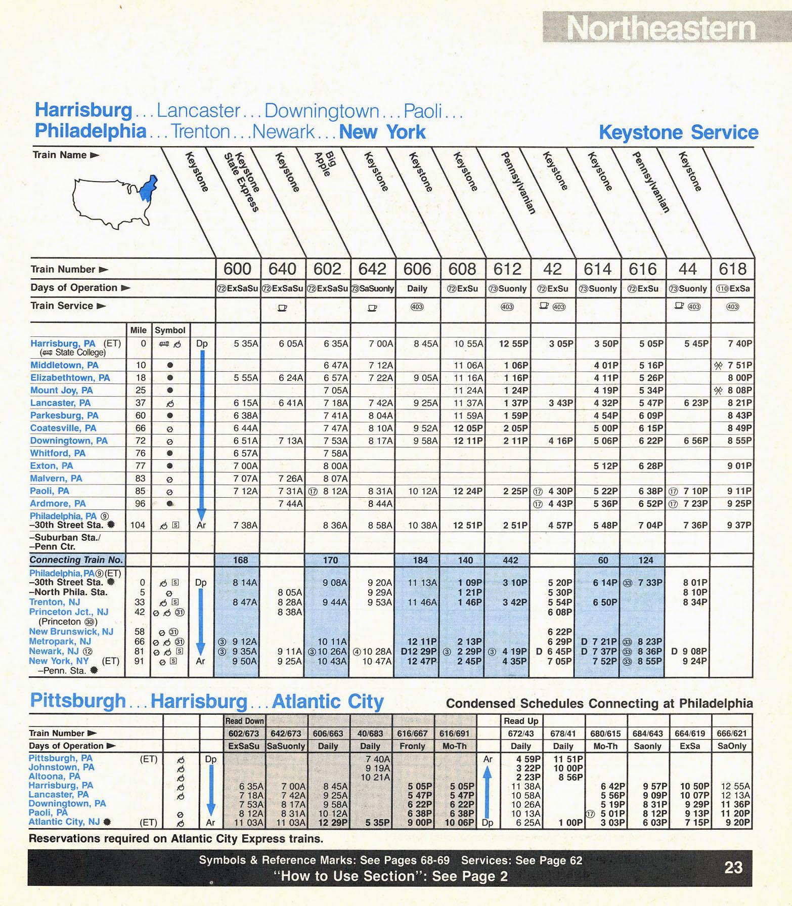 This timetable image is ©1990 National Railroad Passenger Corporation (Amtrak).