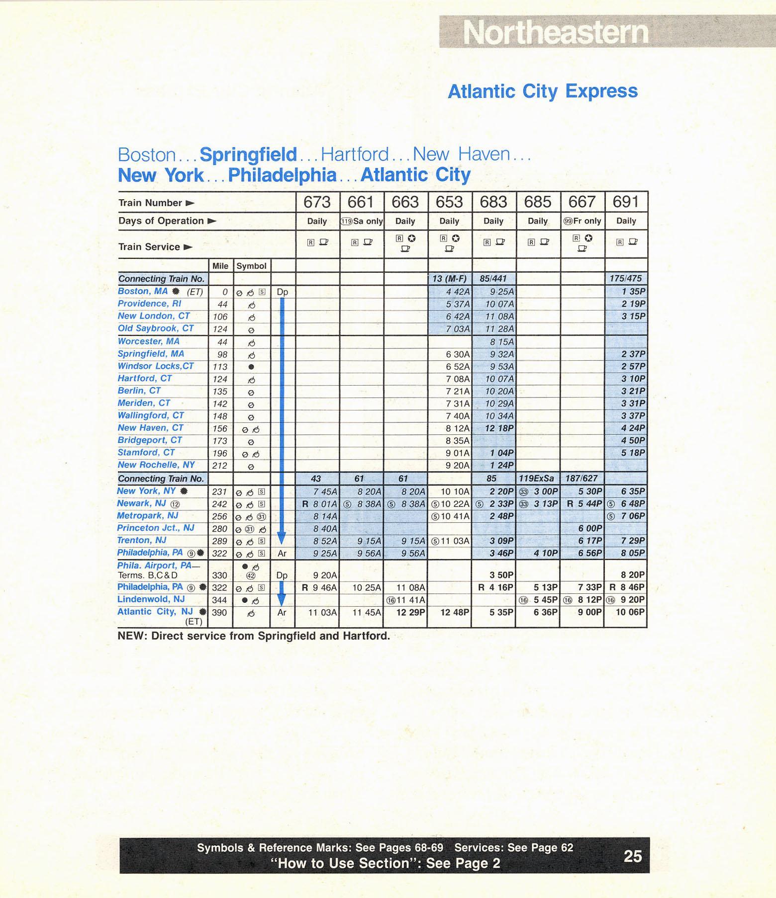 This timetable image is ©1990 National Railroad Passenger Corporation (Amtrak).