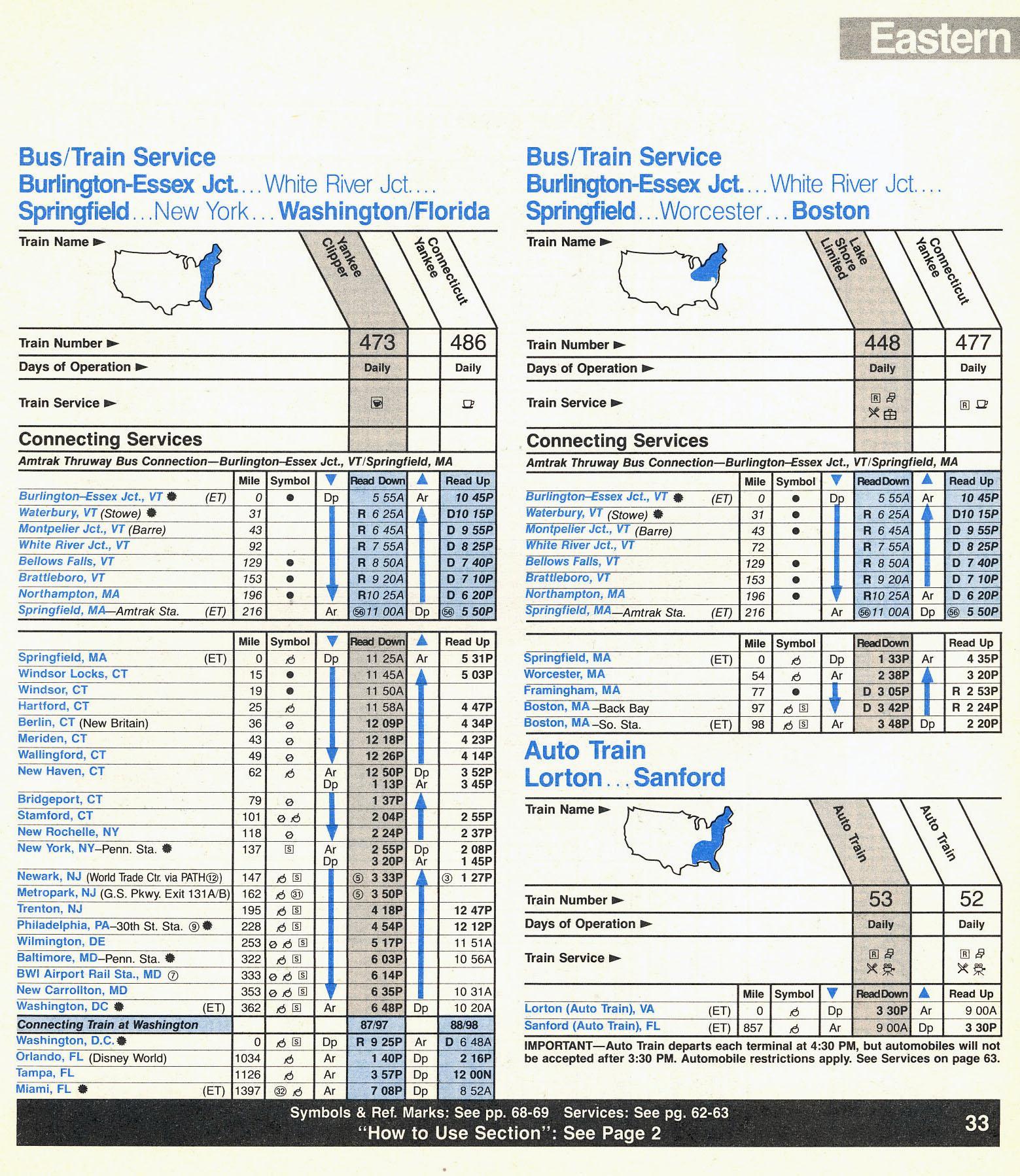 This timetable image is ©1990 National Railroad Passenger Corporation (Amtrak).