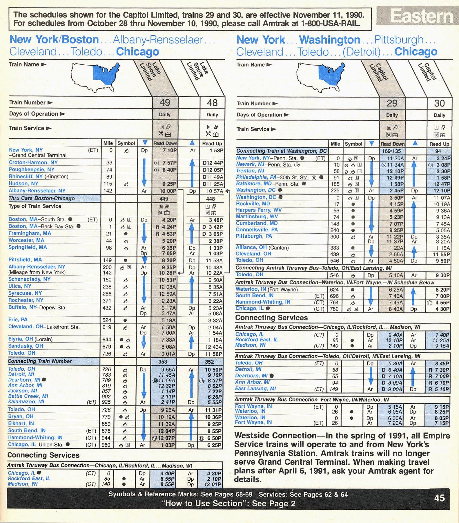This timetable image is ©1990 National Railroad Passenger Corporation (Amtrak).