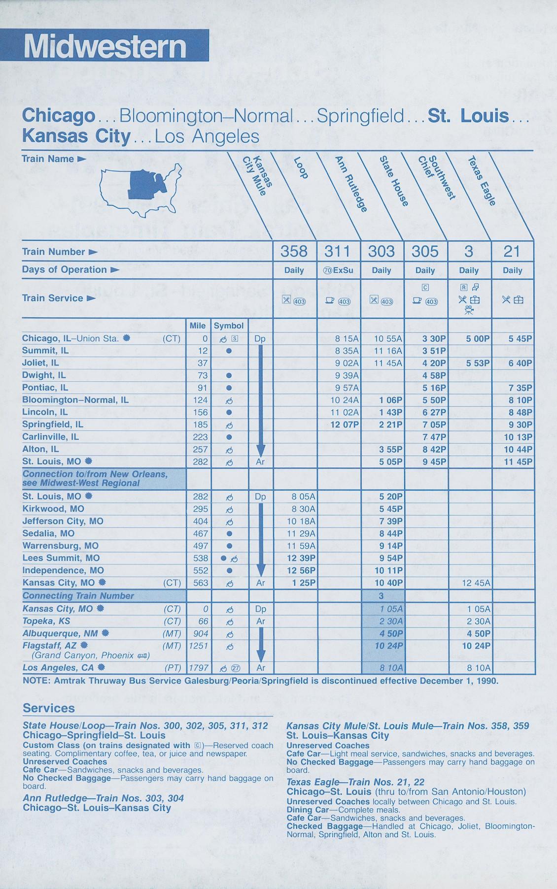 This timetable image is ©1990 National Railroad Passenger Corporation (Amtrak).