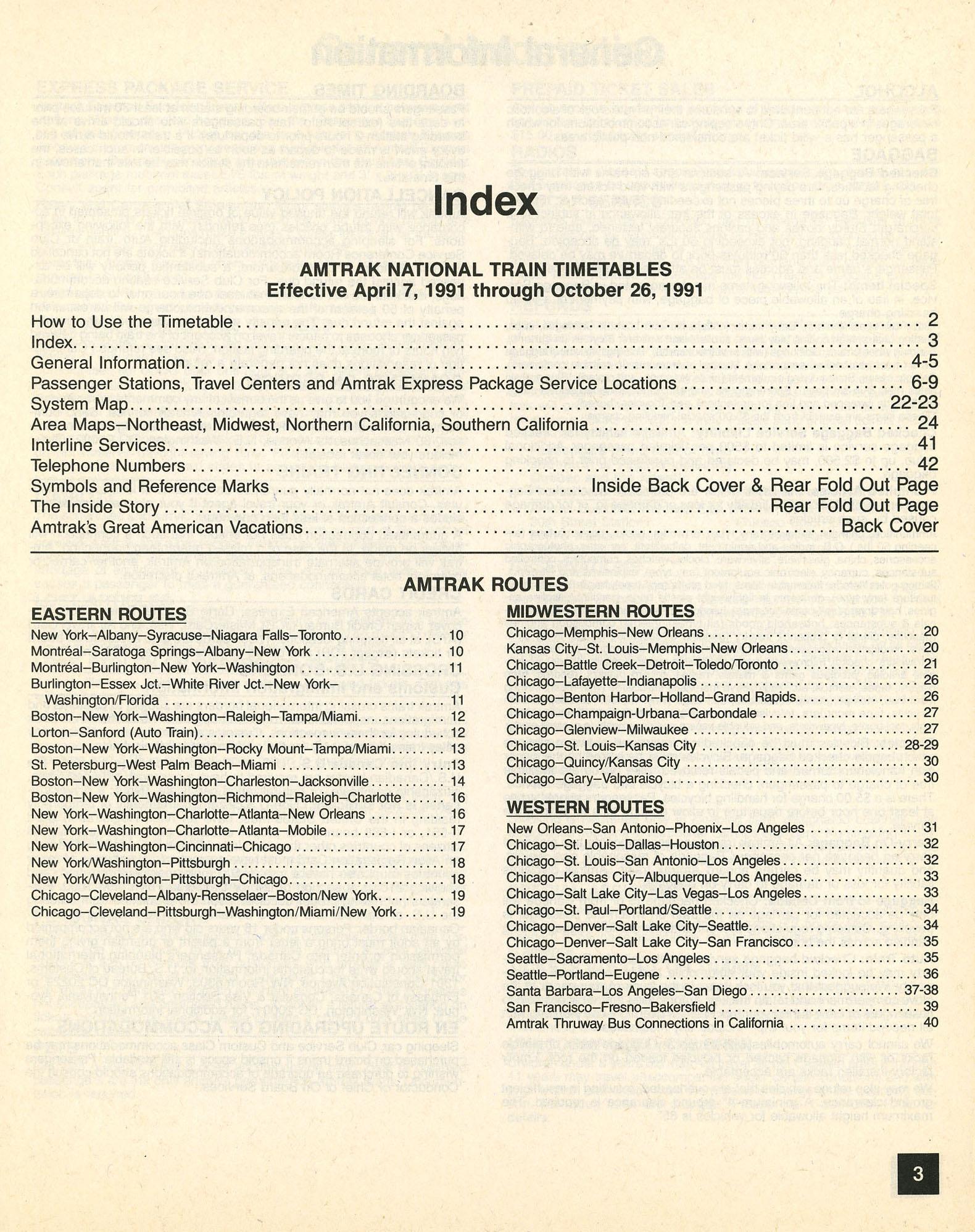 This timetable image is ©1991 National Railroad Passenger Corporation (Amtrak).