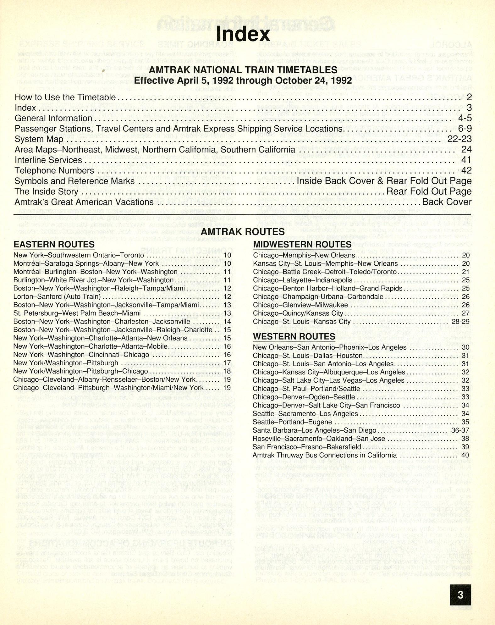 This timetable image is ©1992 National Railroad Passenger Corporation (Amtrak).