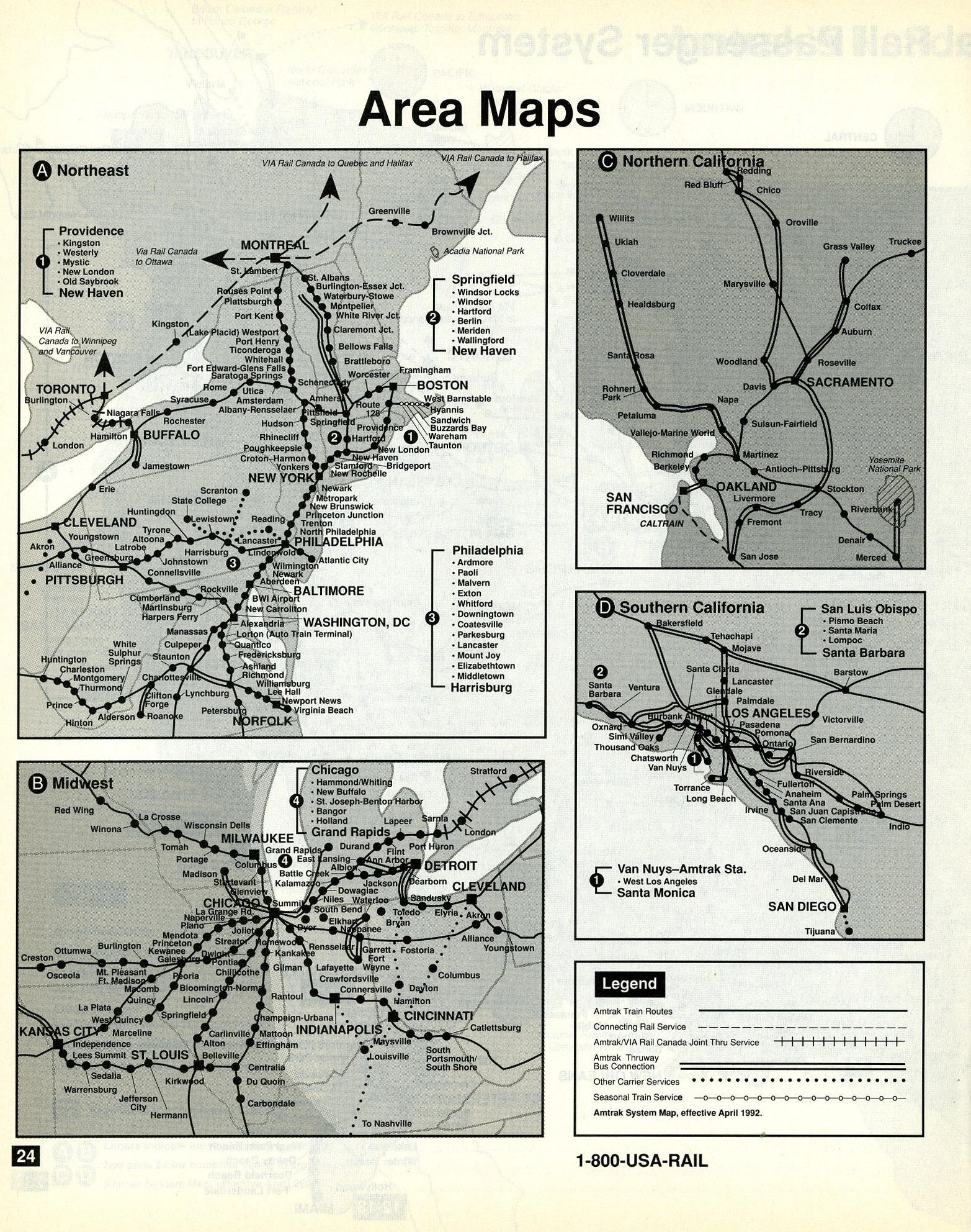 This timetable image is ©1992 National Railroad Passenger Corporation (Amtrak).