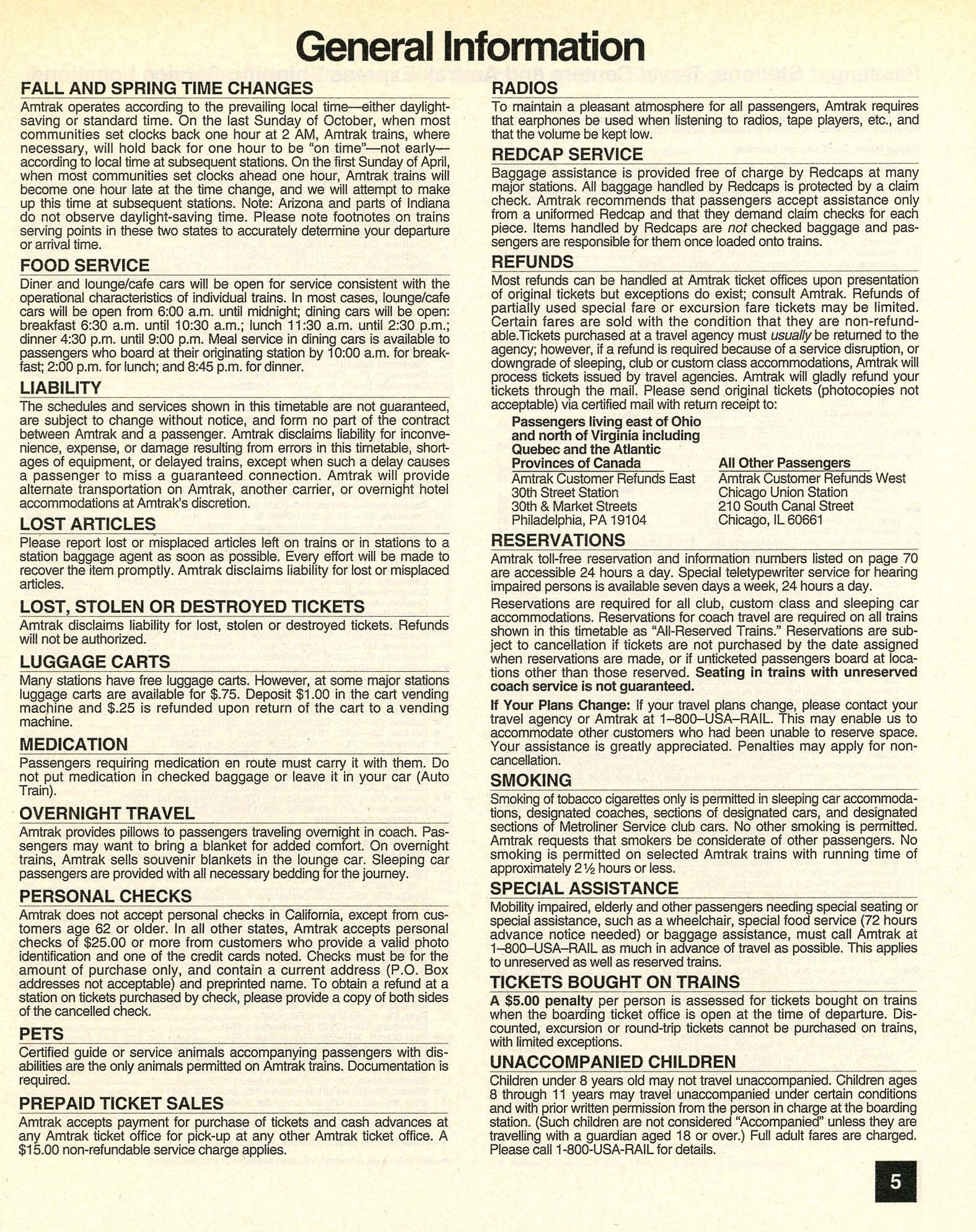 This timetable image is ©1992 National Railroad Passenger Corporation (Amtrak).