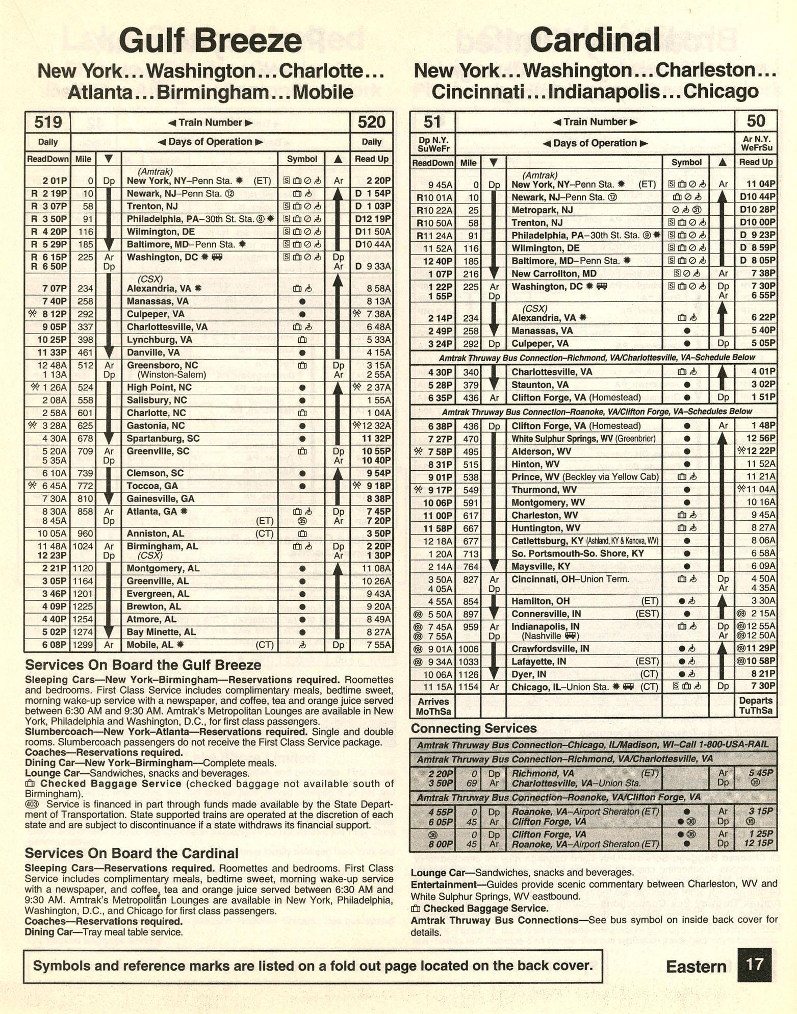 This timetable image is ©1992 National Railroad Passenger Corporation (Amtrak).