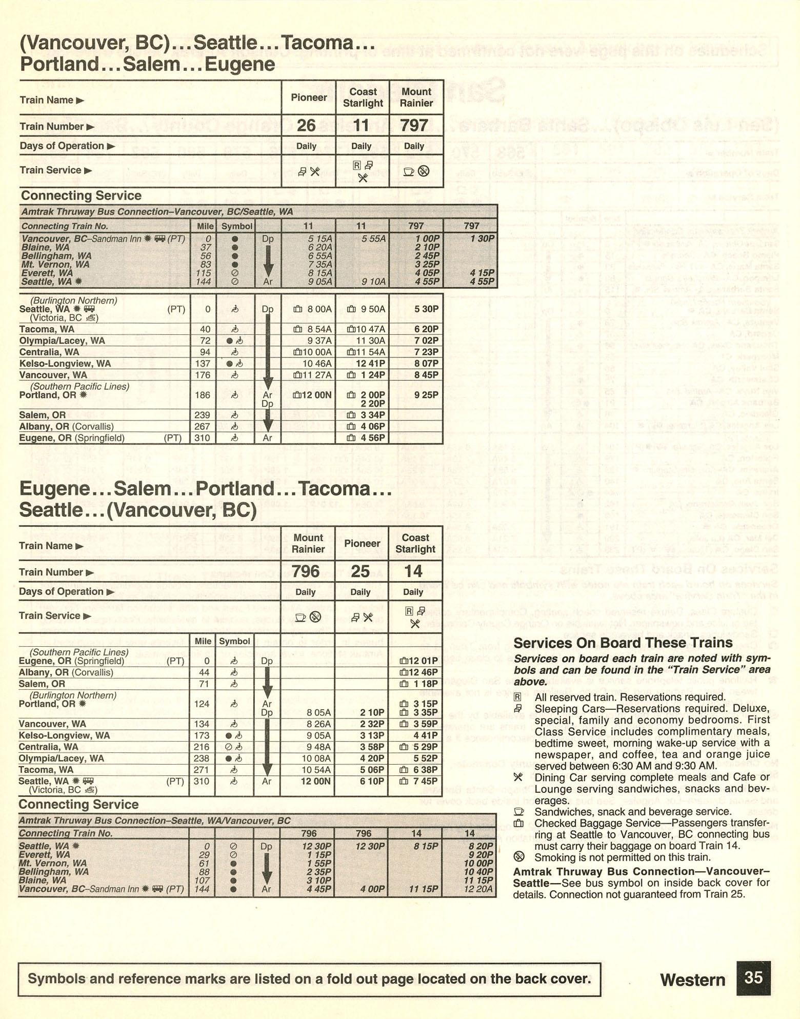 This timetable image is ©1992 National Railroad Passenger Corporation (Amtrak).
