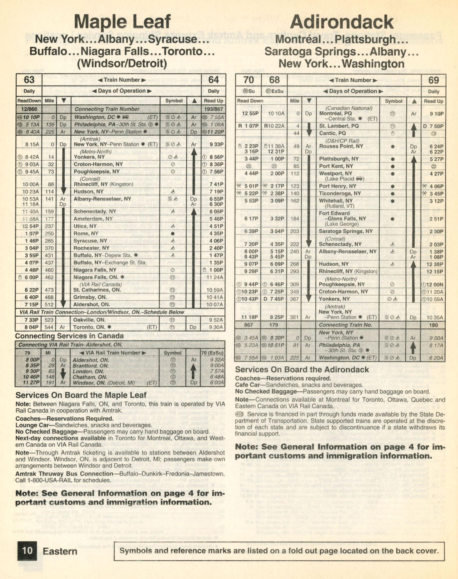 This timetable image is ©1992 National Railroad Passenger Corporation (Amtrak).