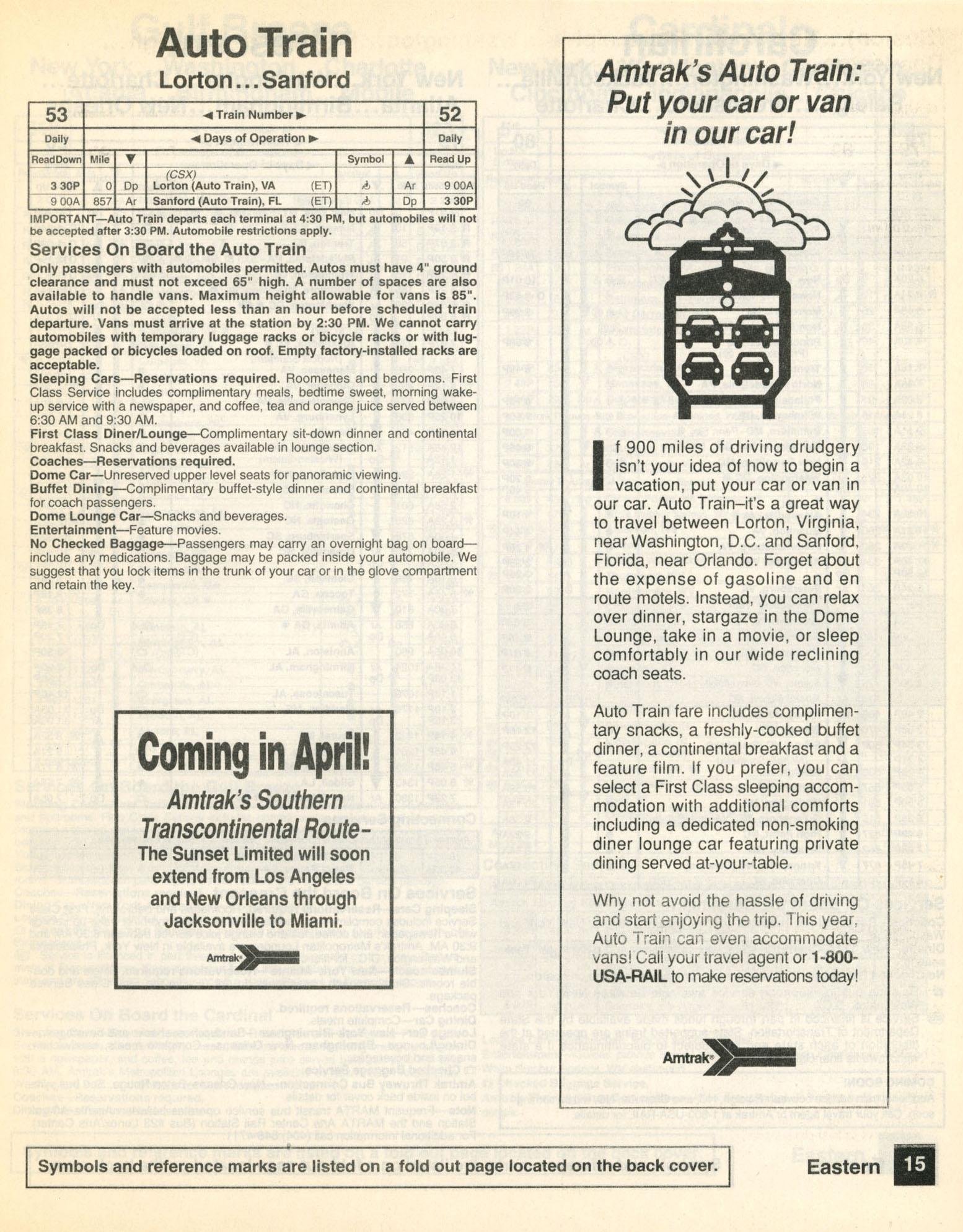 This timetable image is ©1992 National Railroad Passenger Corporation (Amtrak).