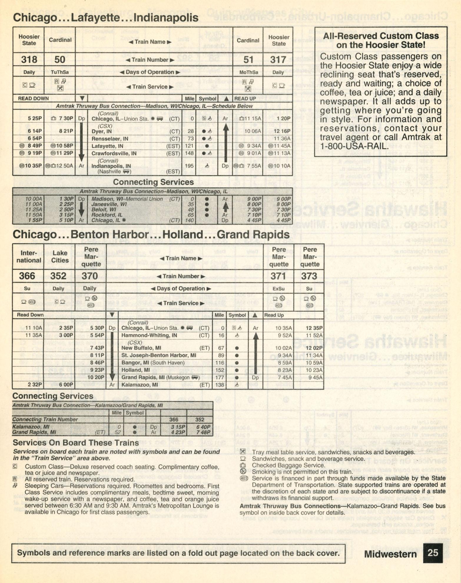 This timetable image is ©1992 National Railroad Passenger Corporation (Amtrak).