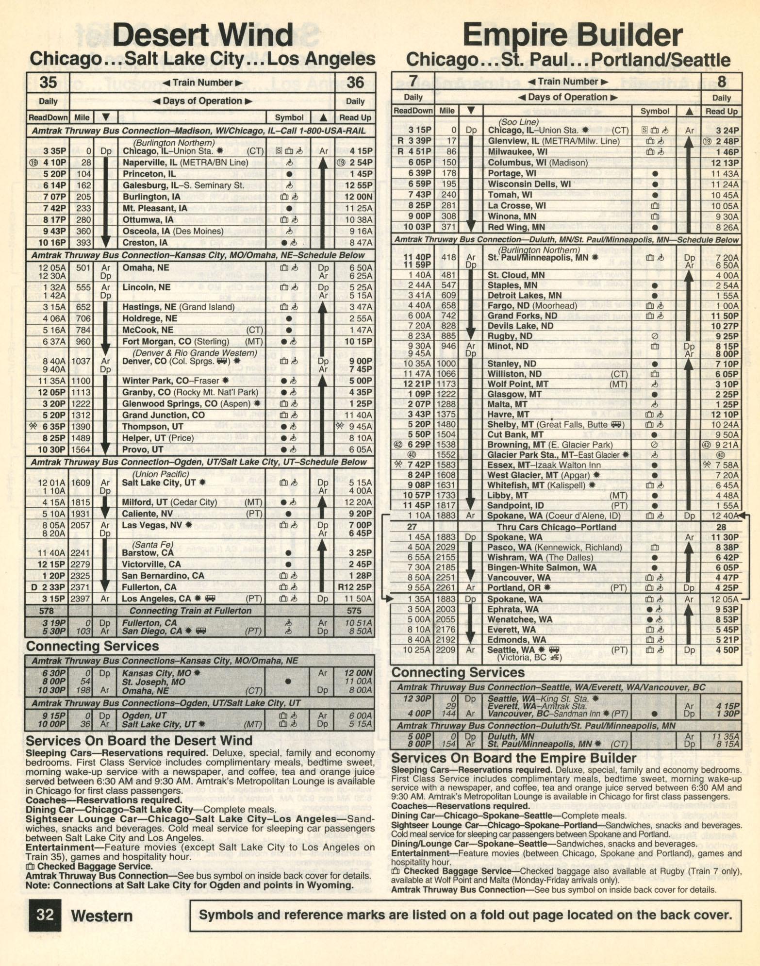 This timetable image is ©1992 National Railroad Passenger Corporation (Amtrak).