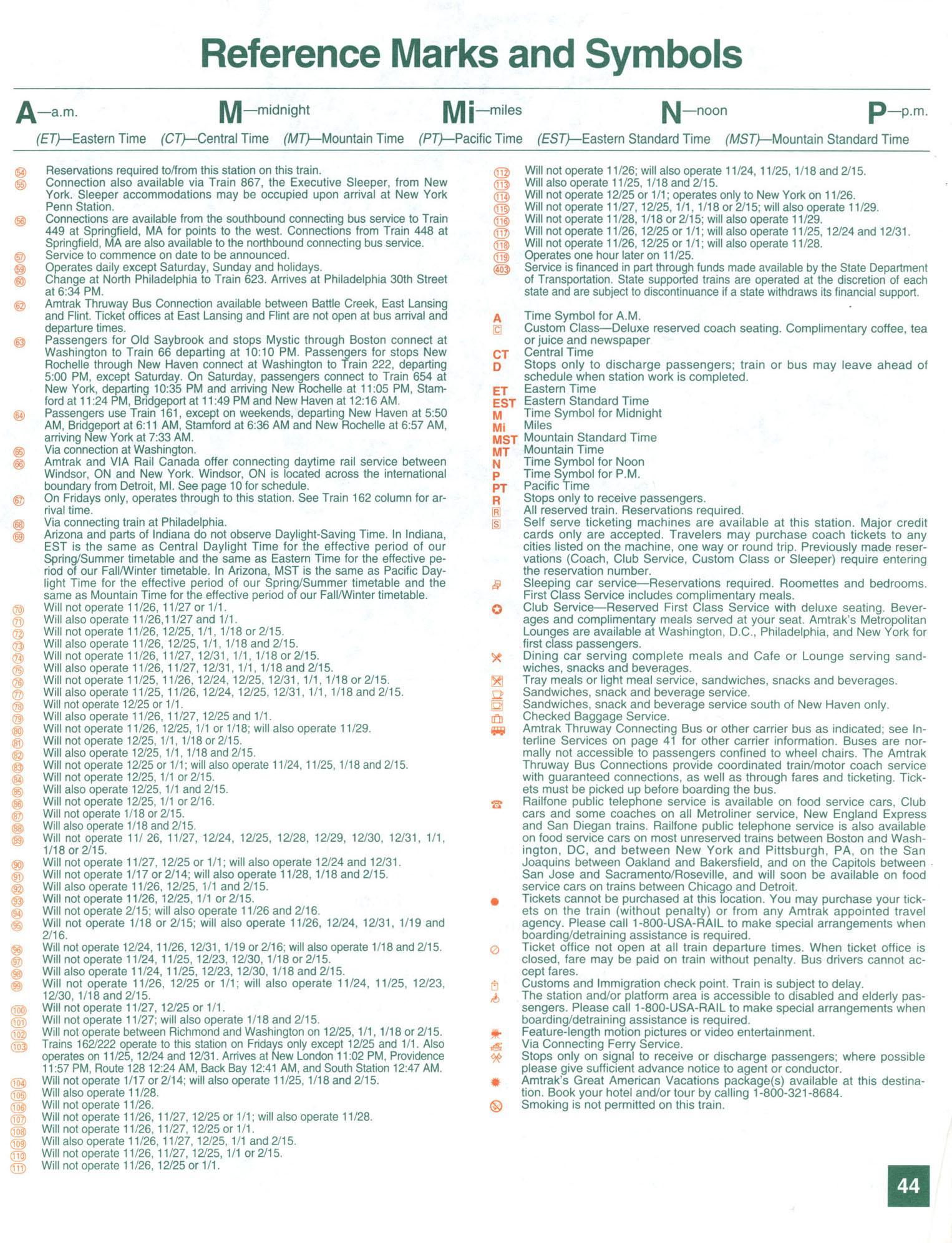 This timetable image is ©1992 National Railroad Passenger Corporation (Amtrak).
