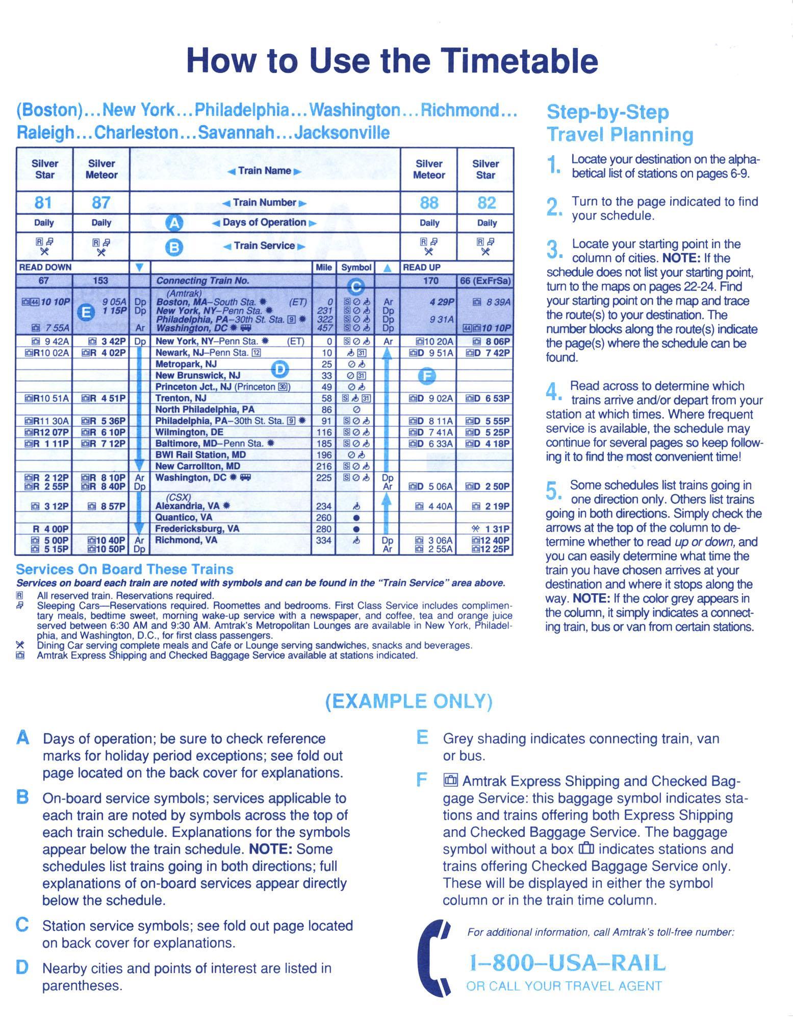 This timetable image is ©1993 National Railroad Passenger Corporation (Amtrak).