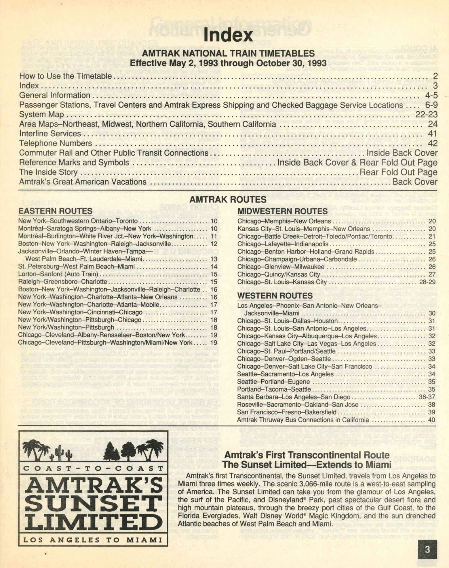 This timetable image is ©1993 National Railroad Passenger Corporation (Amtrak).
