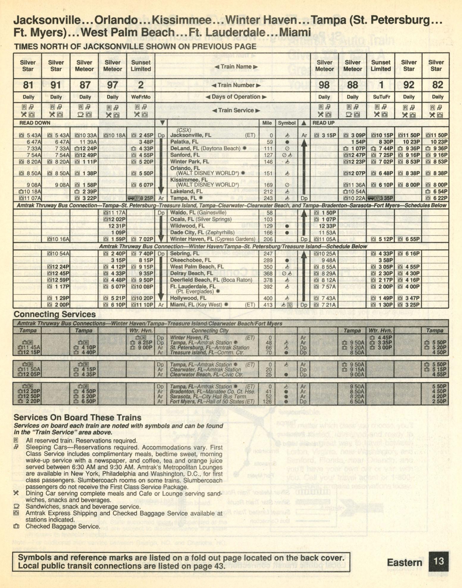 This timetable image is ©1993 National Railroad Passenger Corporation (Amtrak).