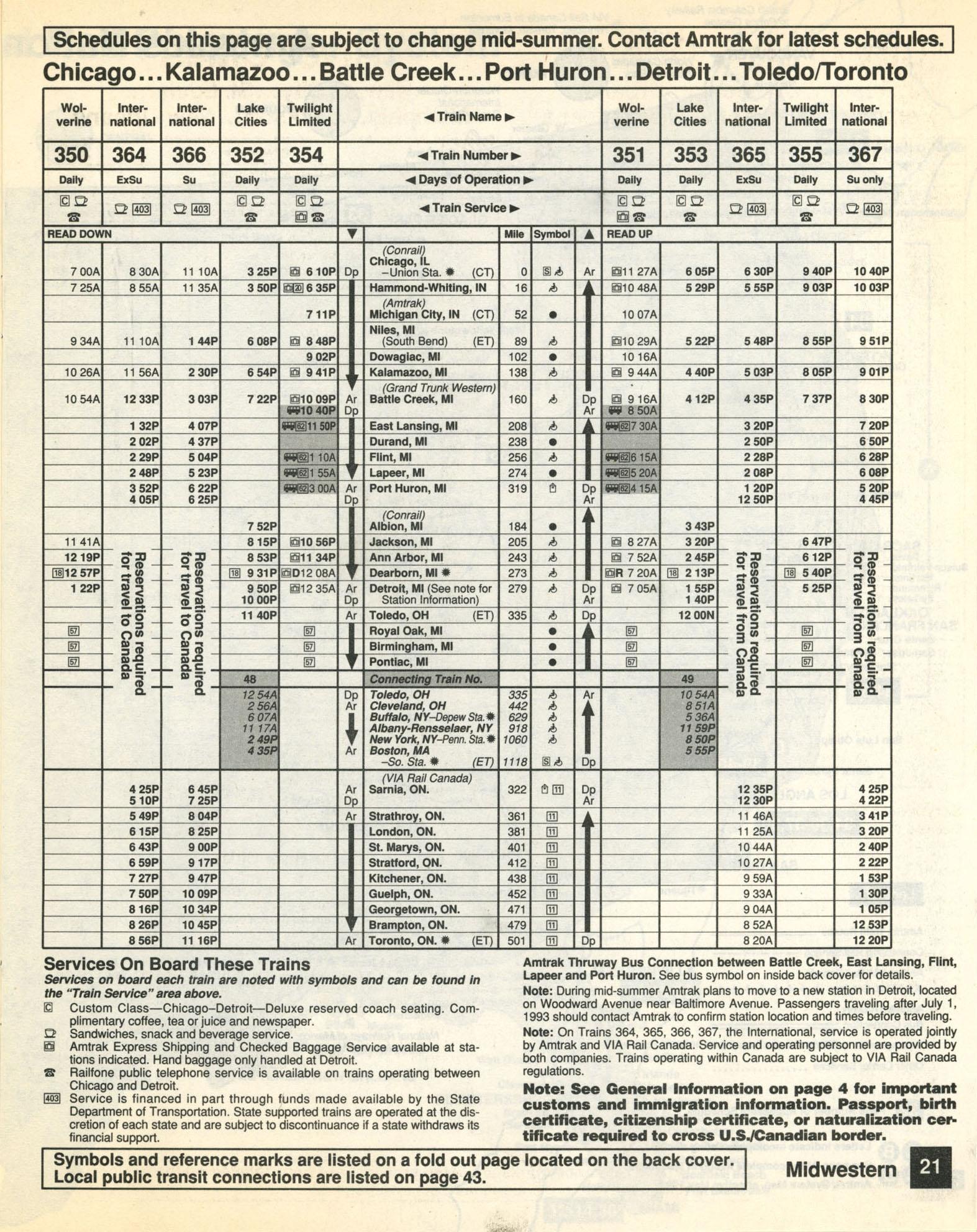 This timetable image is ©1993 National Railroad Passenger Corporation (Amtrak).