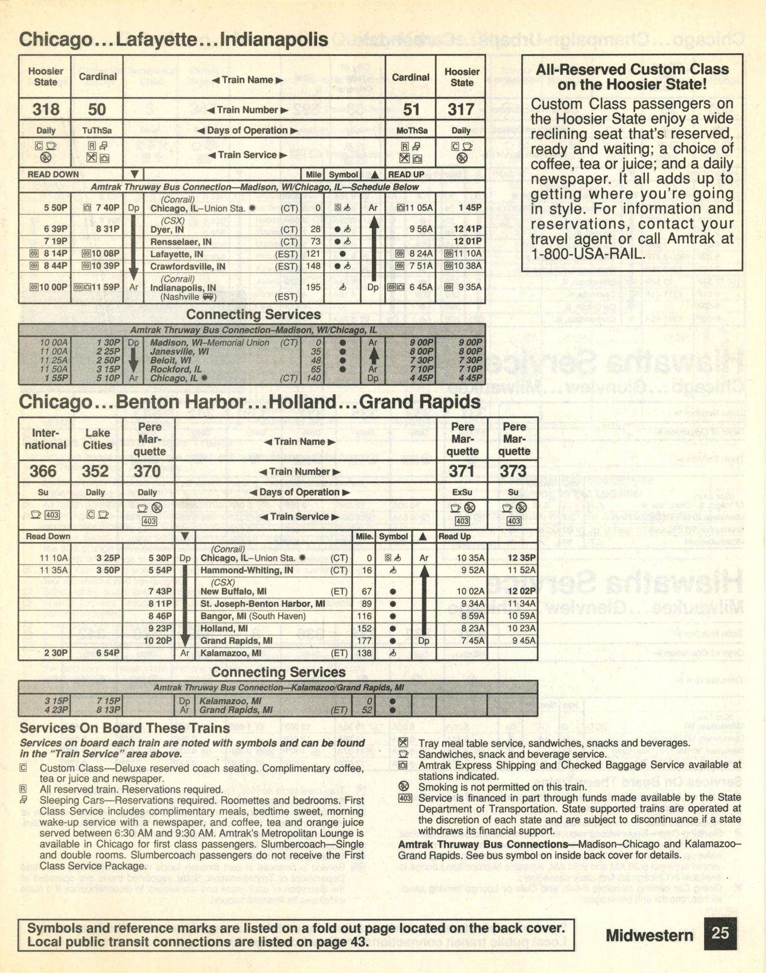 This timetable image is ©1993 National Railroad Passenger Corporation (Amtrak).