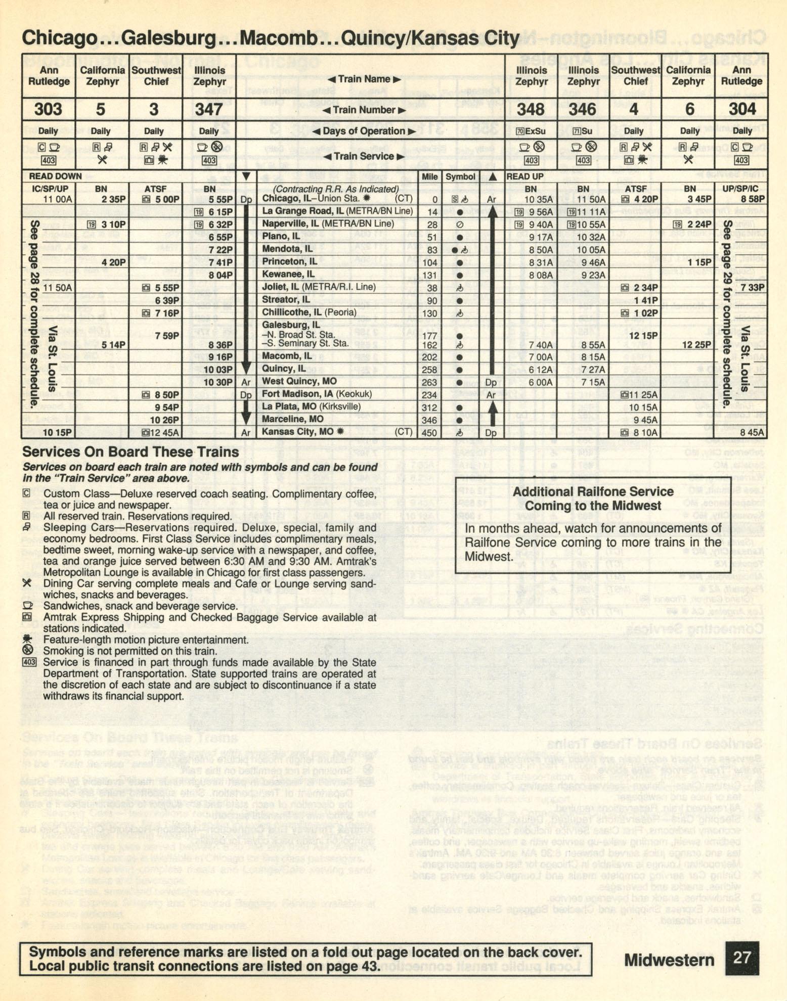 This timetable image is ©1993 National Railroad Passenger Corporation (Amtrak).