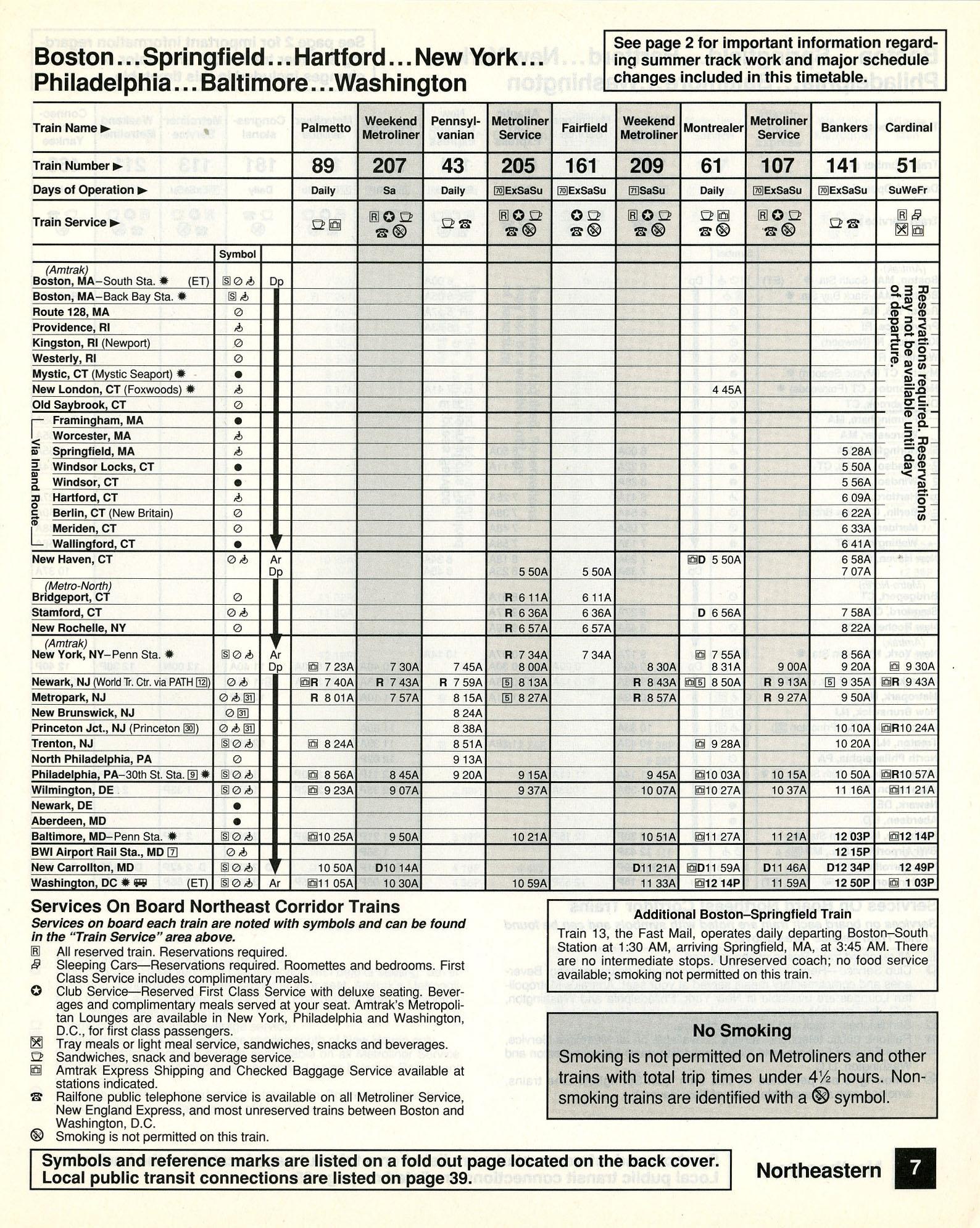 This timetable image is ©1993 National Railroad Passenger Corporation (Amtrak).