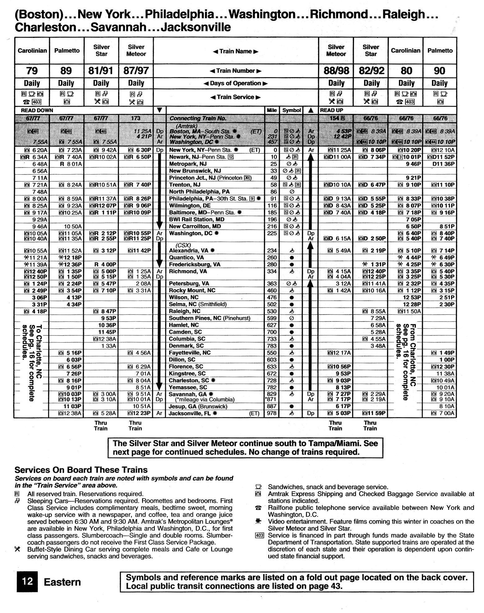 This timetable image is ©1993 National Railroad Passenger Corporation (Amtrak).