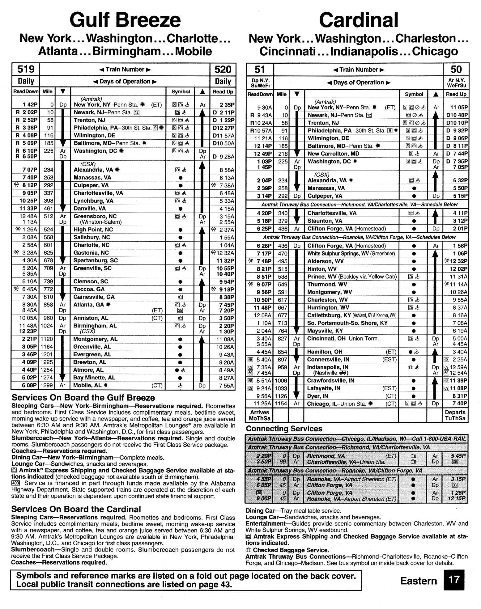 This timetable image is ©1993 National Railroad Passenger Corporation (Amtrak).