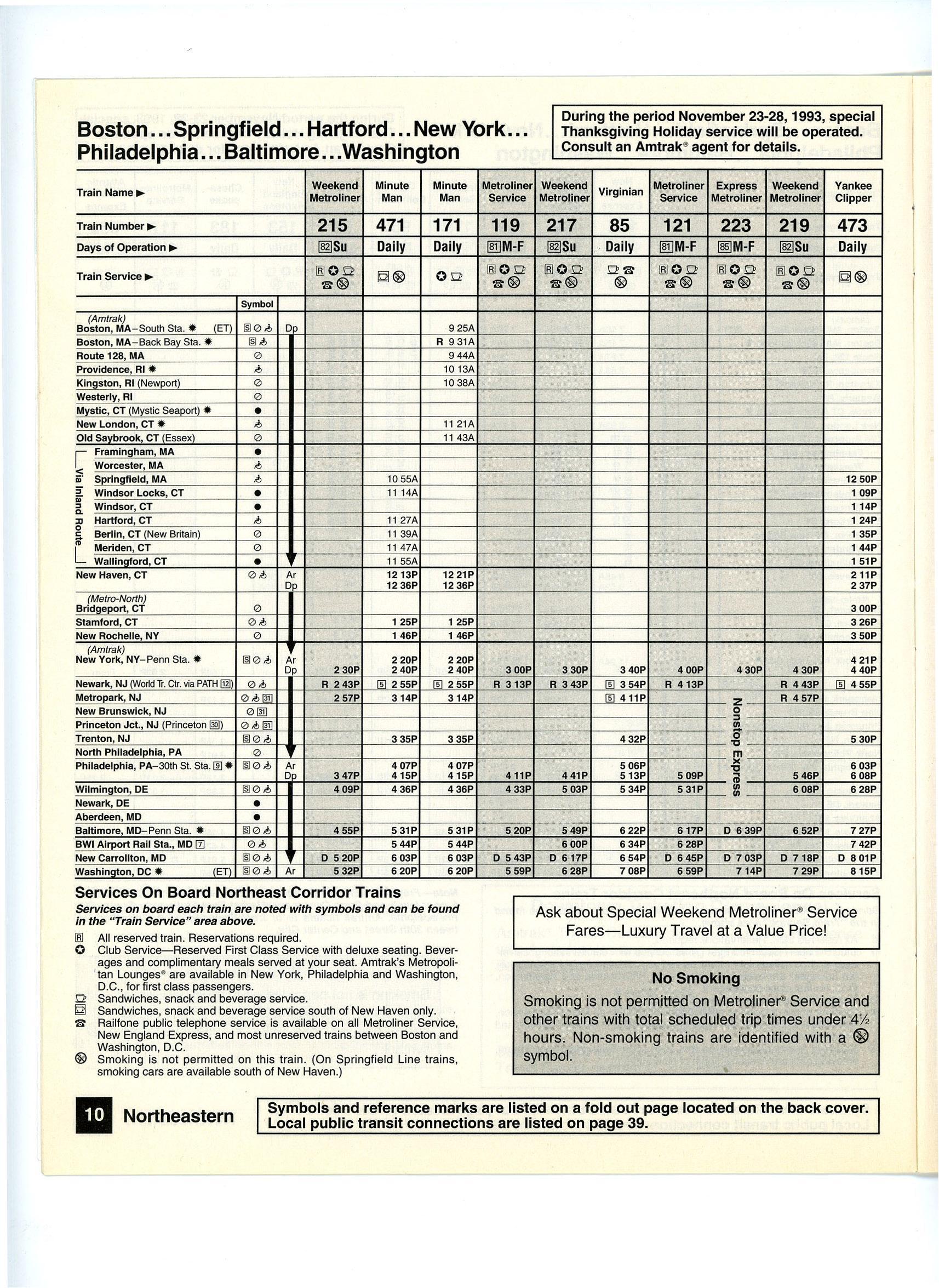 This timetable image is ©1993 National Railroad Passenger Corporation (Amtrak).