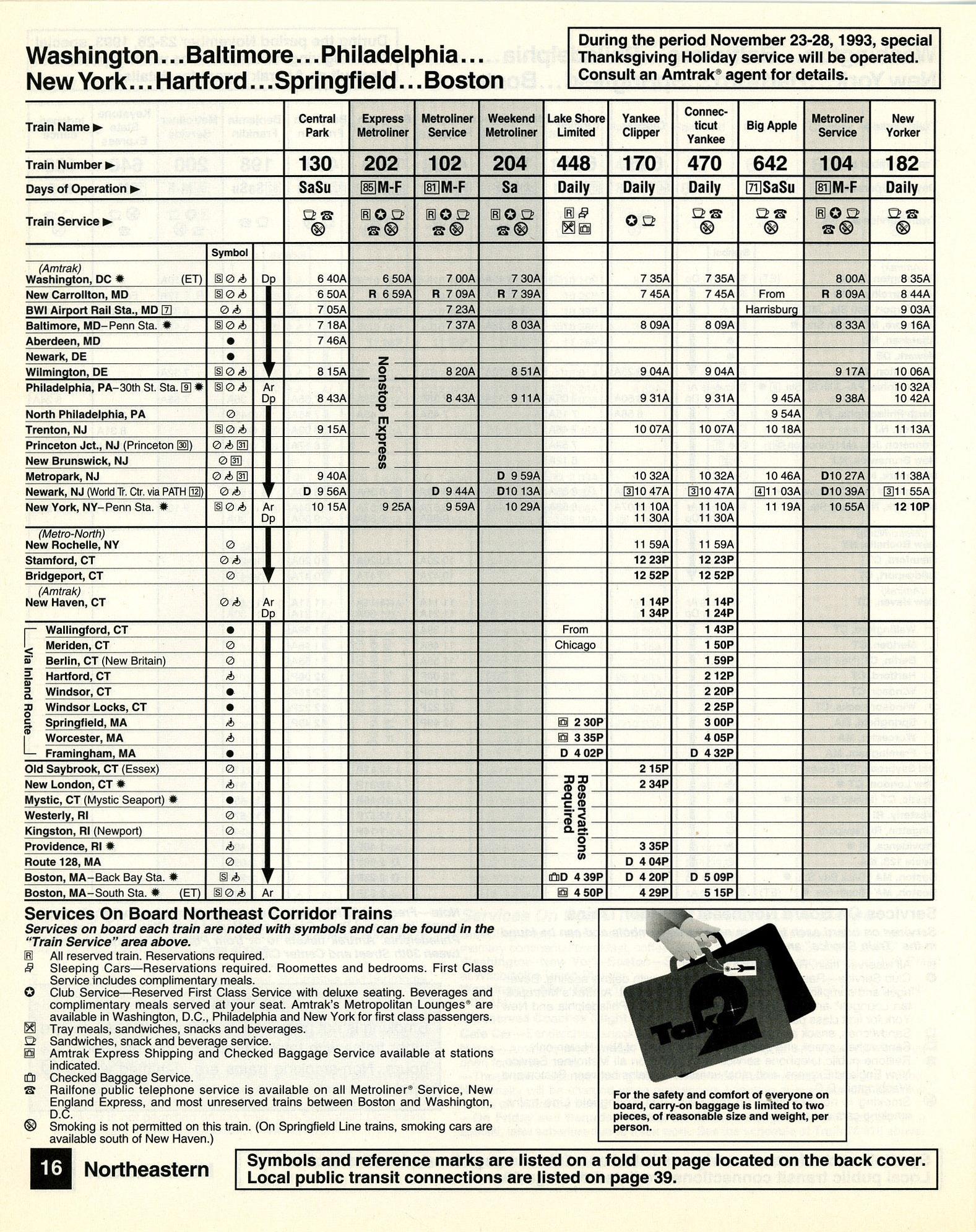 This timetable image is ©1993 National Railroad Passenger Corporation (Amtrak).