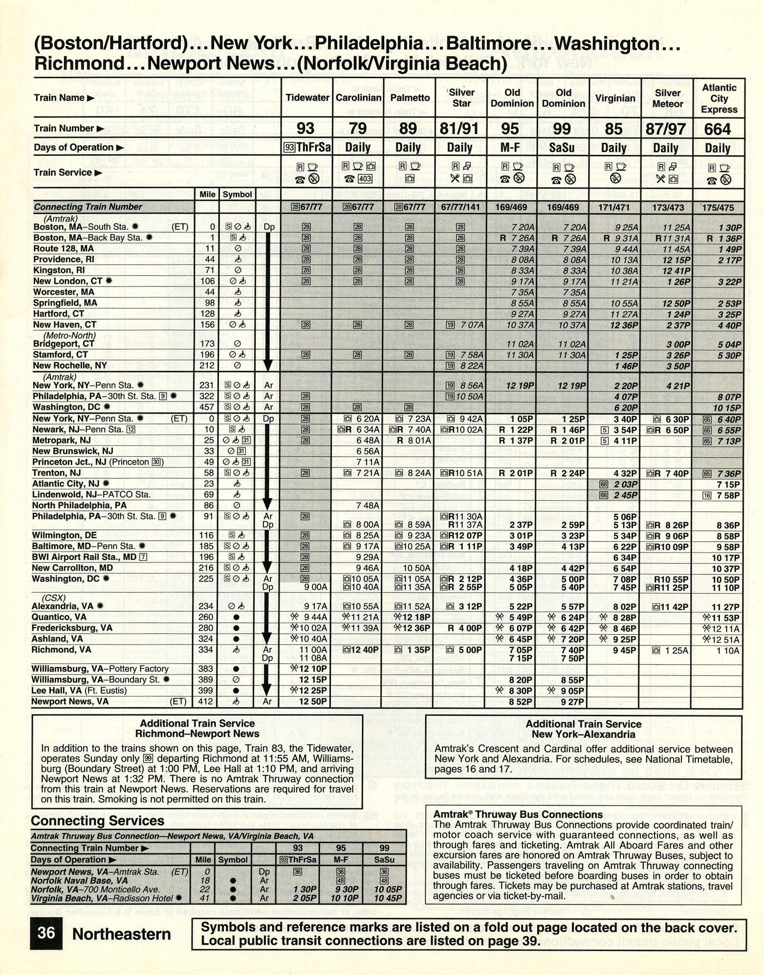 This timetable image is ©1993 National Railroad Passenger Corporation (Amtrak).