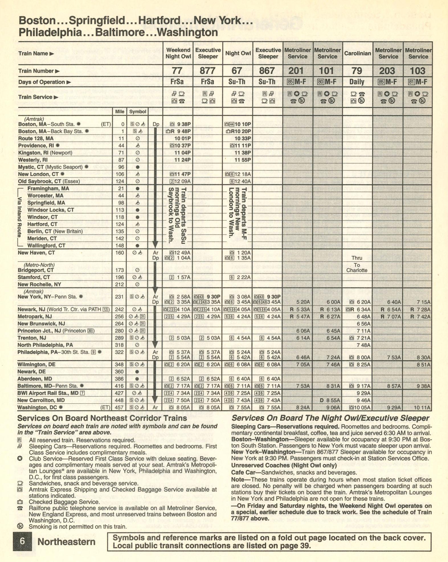 This timetable image is ©1993 National Railroad Passenger Corporation (Amtrak).